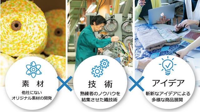 元々、開発主導のタオルメーカーであるため、新素材、新商品への取り組みに非常に積極的で、綿素材だけにこだわらず、麻やウールなどの天然素材、機能性化学繊維など、一般的なタオルメーカーが使用しない多種にわたる素材を使用した開発への取り組みに日々精進しています。
