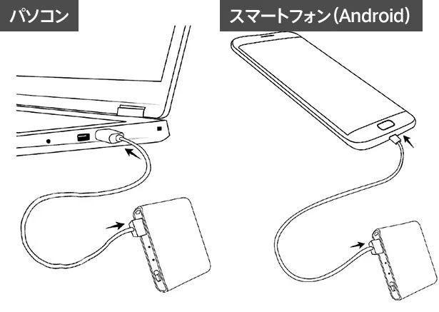 データを再生する際は、USBケーブルでレコーダーをパソコンやスマホ(Android)に接続してください。