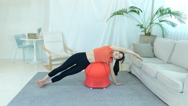 こちらはバランスボールトレーニング。気軽に思い立ったらいつでもすぐにできます。腹筋が気になる方はクッション性があるので腰への負担を軽減します