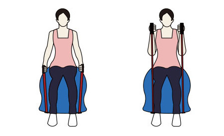 チューブを使用して胸筋・背筋の筋力アップが出来ます。