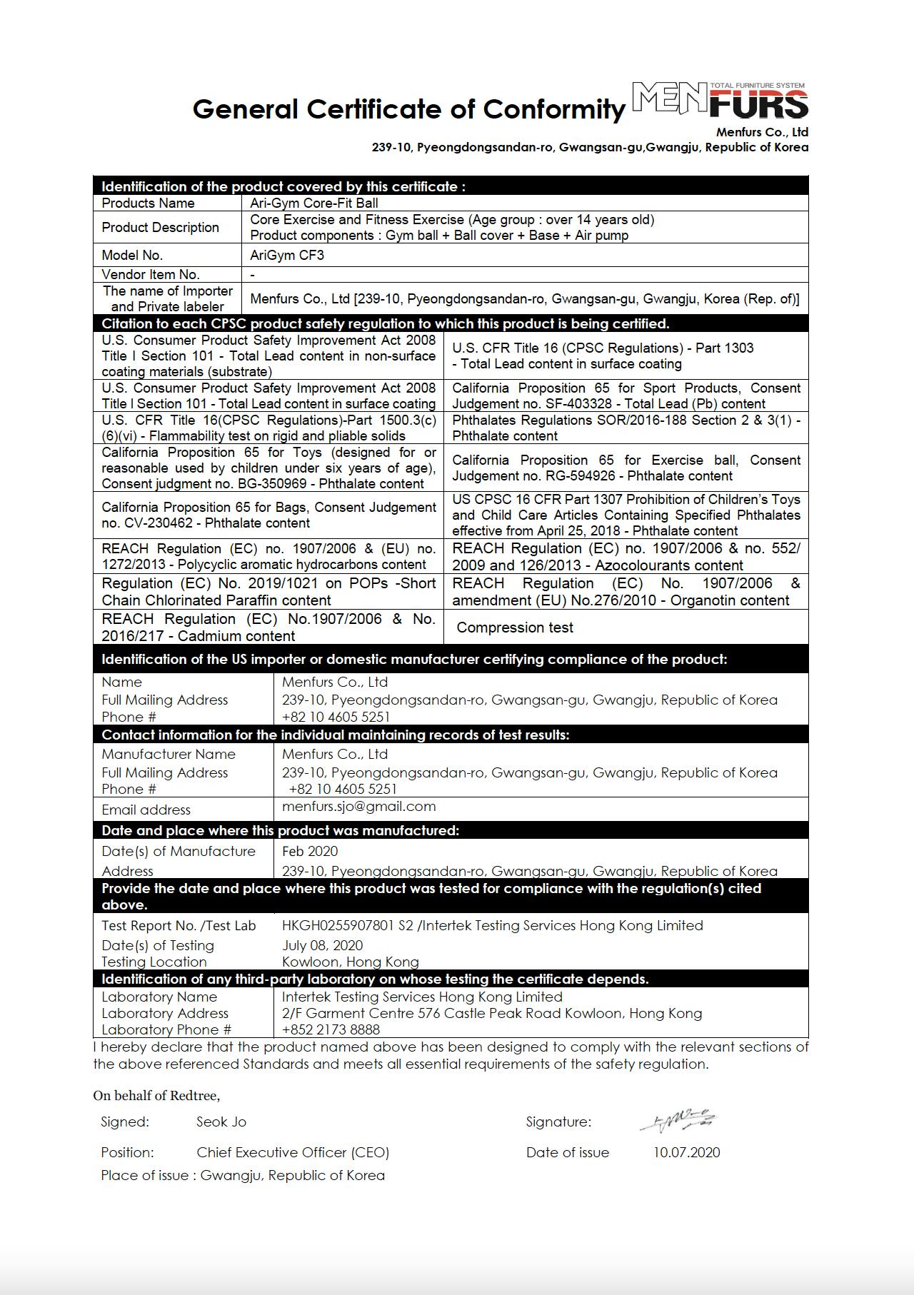 アメリカGCCやヨーロッパのCE認証を受けており公的機関でテスト済みです。まさに正真正銘のバランスボールチェア、それがCore Fit Ball Ver.3です。