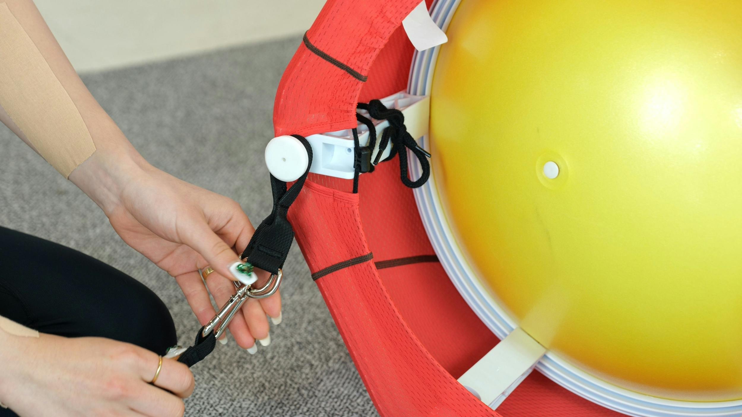 テストした生地の多くは伸縮性が低く、サンプルの多くはバランスボールの圧力で破けてしまいました。そのため生地を探しに現地に何度も行き、サンプルを制作し、荷重実験を繰り返しました。