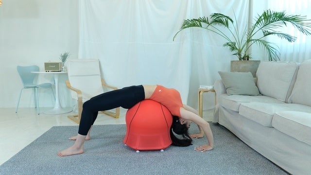 こちらはバランスボールトレーニング。気軽に思い立ったらいつでもすぐにできます。腹筋が気になる方はクッション性があるので腰への負担を軽減します