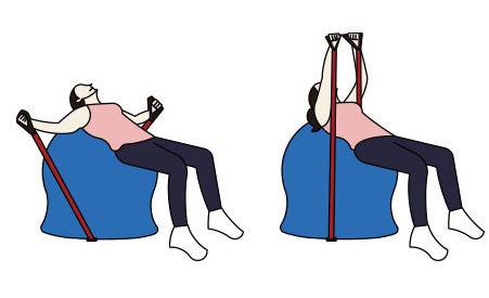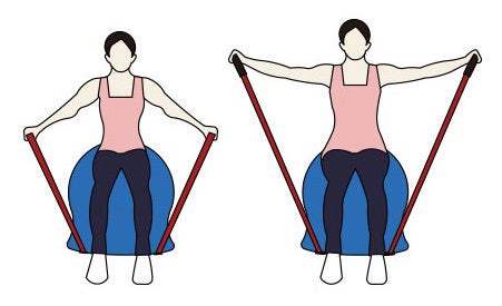 チューブを使用して胸筋・背筋の筋力アップが出来ます。