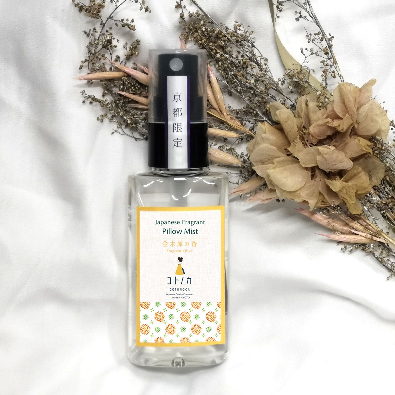 天然由来成分をベースに作られた金木犀の香りのピローミスト。アロマの香りでリラックスし、枕への除菌・消臭効果を発揮します。