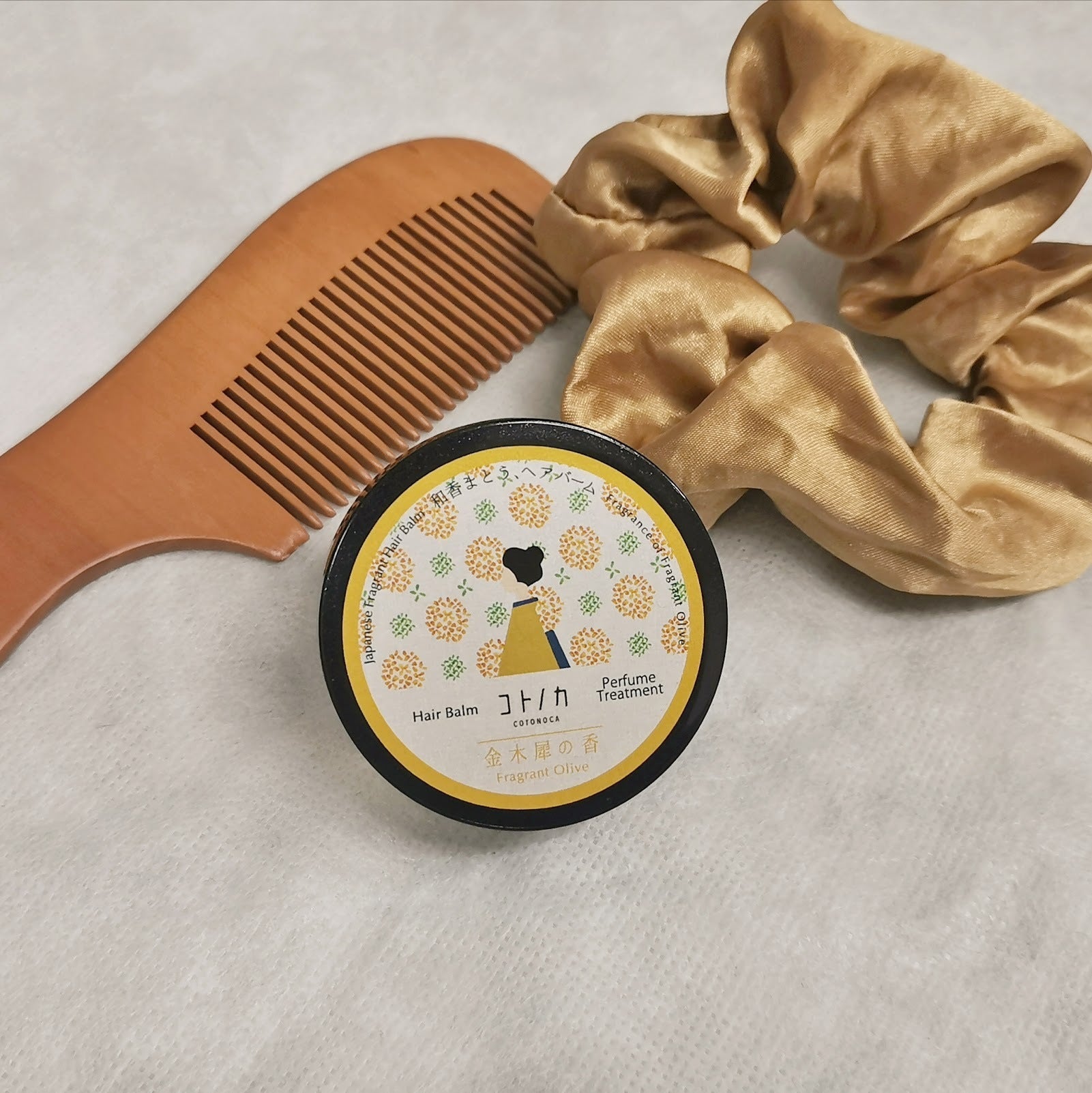 ヘアバームは、従業員の「髪から金木犀の香りがしたら可 愛くない ???」という声から生まれました。防腐剤・アルコール・合成色素フリーで傷んだ毛先を滑らかに補修します。髪を結んだ時のおくれ毛につけてウェット感を出したり、前髪につけて抜け感を作ったり…。髪のサッとお直しやセットに大活躍でき、しかも動くたびに髪から金木犀の香りがする優れものです。