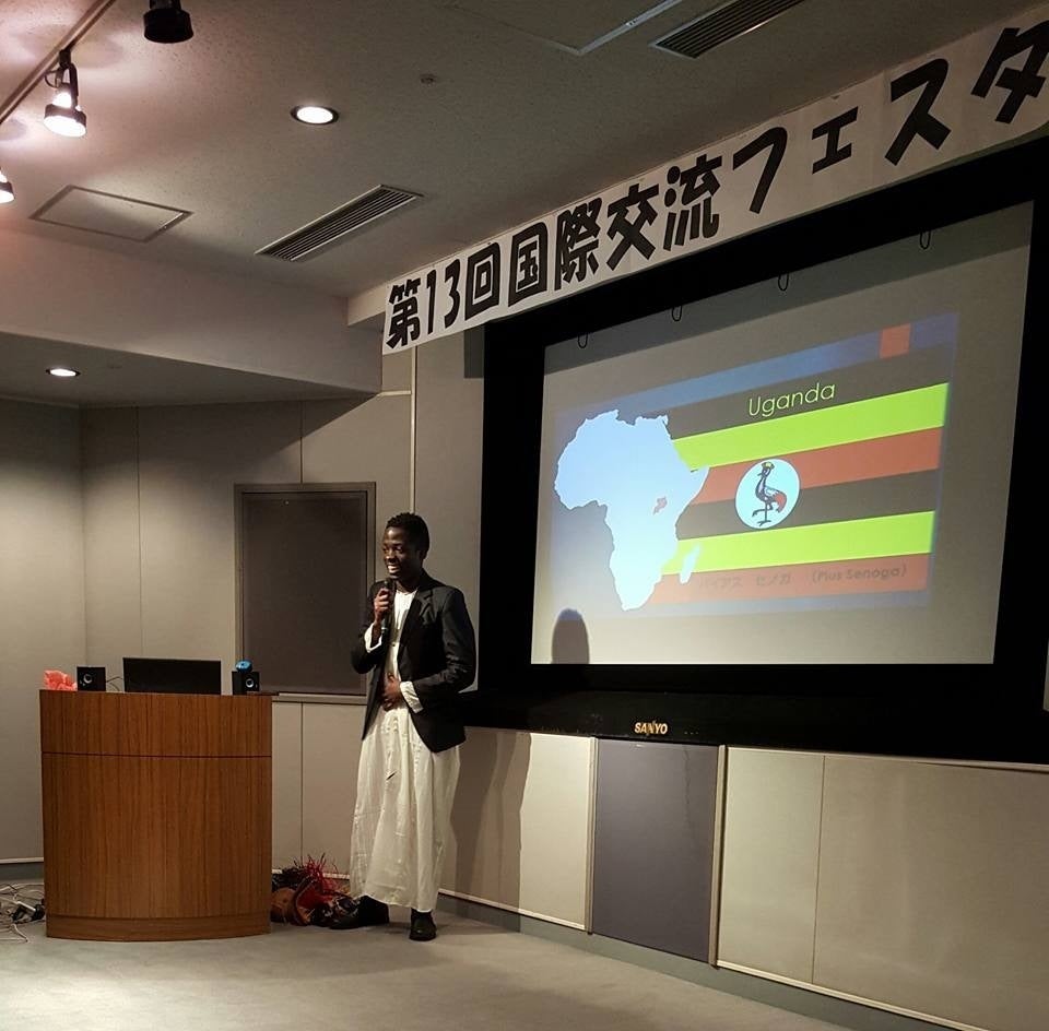 (宝塚市主催「第13回 国際交流フェスタ」にてウガンダについてのレクチャーをした際)