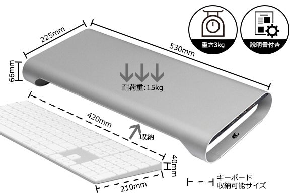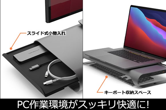 また、スタンドの下にはキーボードが入るよう設計されているので、PC作業が終わればデスク周りもスッキリした印象になります。