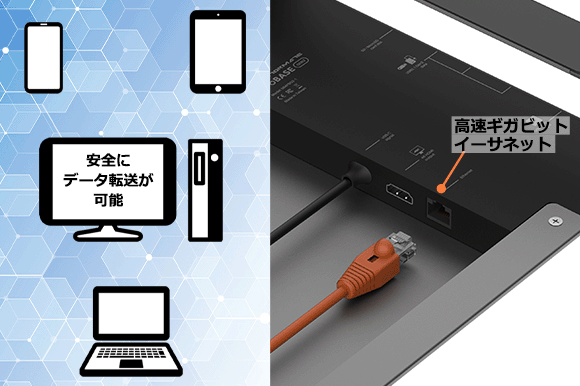イーサネットポートを使用することでより安全にデータの転送が可能になり、