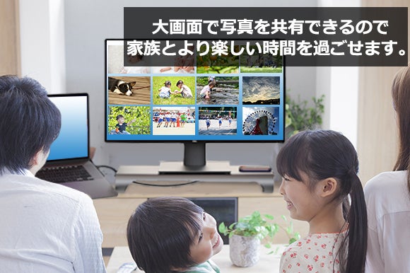 「成人を迎えた」「誕生日が来た」「一年前の今日はどんなだったかな」と、家族で写真を見て振り返りたい時に大画面で写真を共有できるとより楽しい時間をお過ごしいただけます。