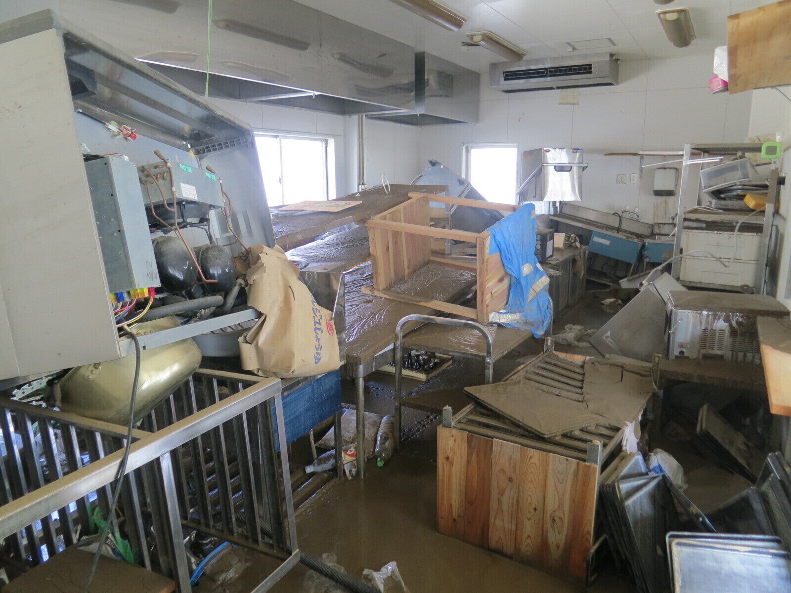 水害以前の店舗の広さ、調理場の広さ、調理器具の充実、平日の営業再開を行なうためには、資金が不足しています。どうか、ご支援いただけると幸いです。