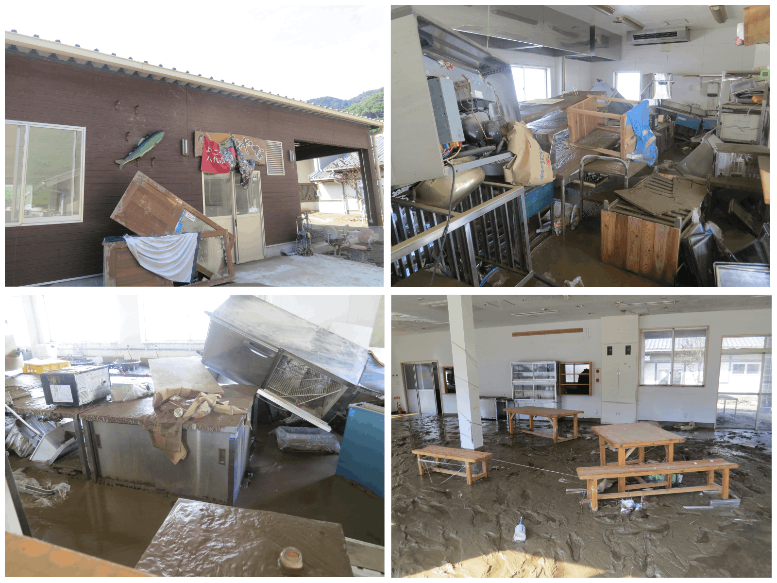 しかし、昨年度は新型コロナウイルスの影響で6月に断腸の思いで、営業中止を決断しました。その直後の7月に熊本県を中心に発生した令和2年7月豪雨の影響で、隣接する球磨川が大氾濫。店舗・什器・調理器具全てが濁流に飲み込まれ、使用不能となりました。