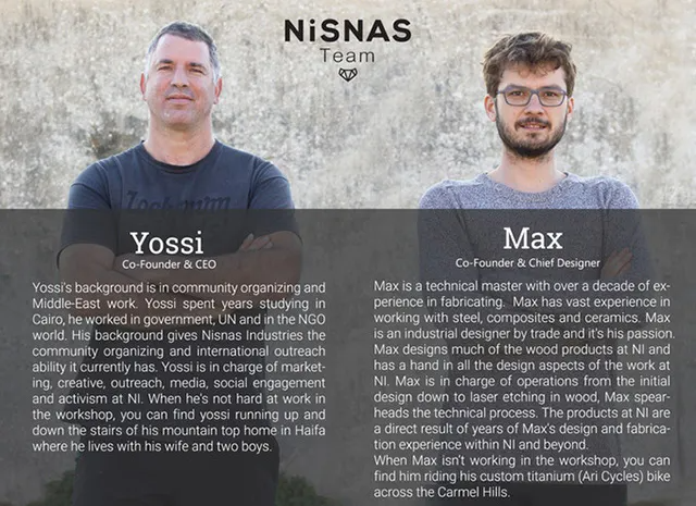 代表のYossiは、政府、国連、そしてNGOの領域で仕事をしてきました。そして地元であるイスラエル、ハイファに戻りNiSNAS Industriesを創業。ハイファには芸術的な伝統に溢れており、地域には鉄鋼の巨匠や製造業者がたくさんいます。ただ、社会的・経済的には発展途上な中、地域活性を図るため本製品が開発されたのです。”モノづくりを通じて社会を発展させること”そして”自国の職人が誇りを持ってモノづくりに集中できる環境を実現すること”が彼の夢であり目標です。