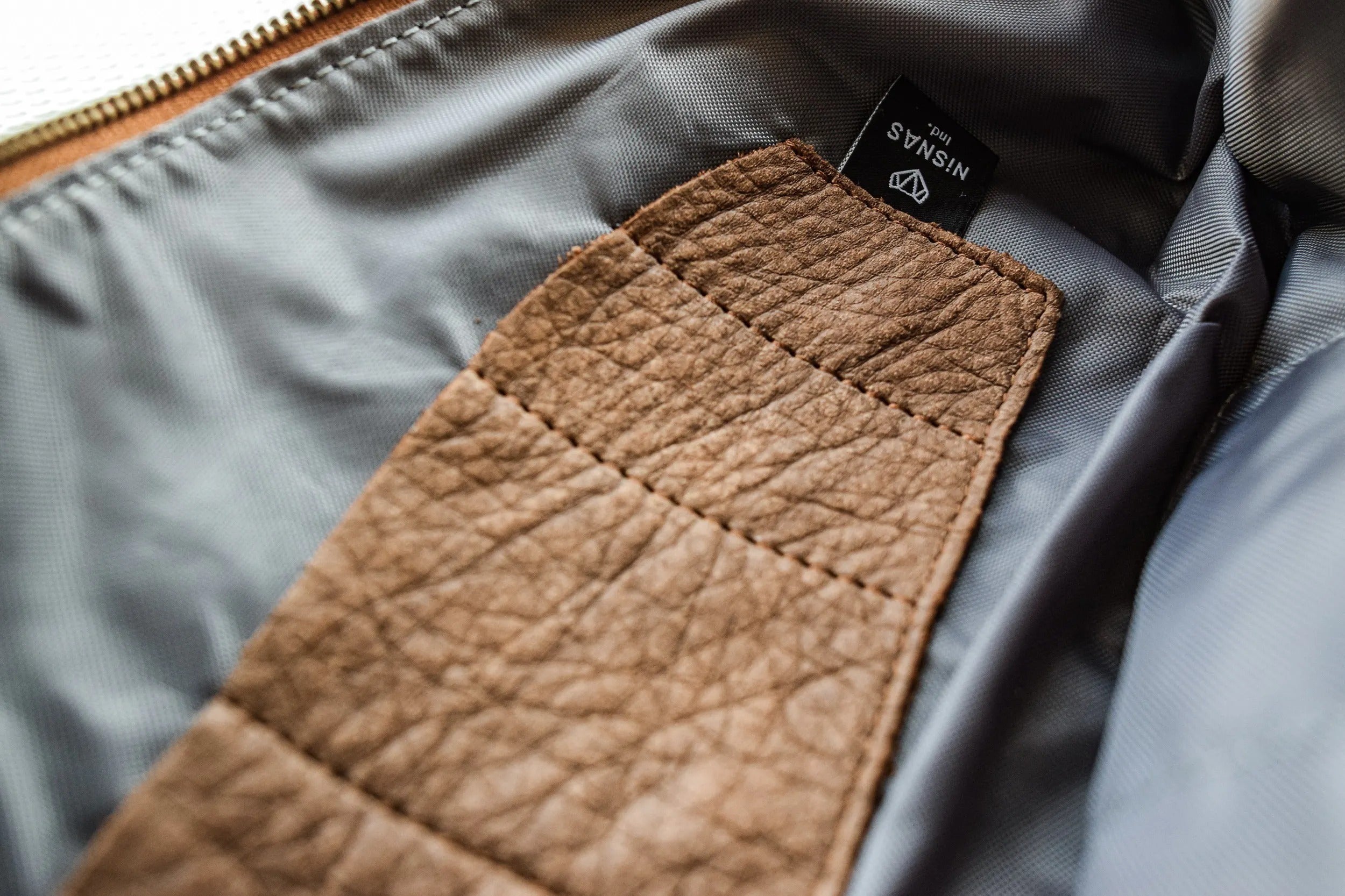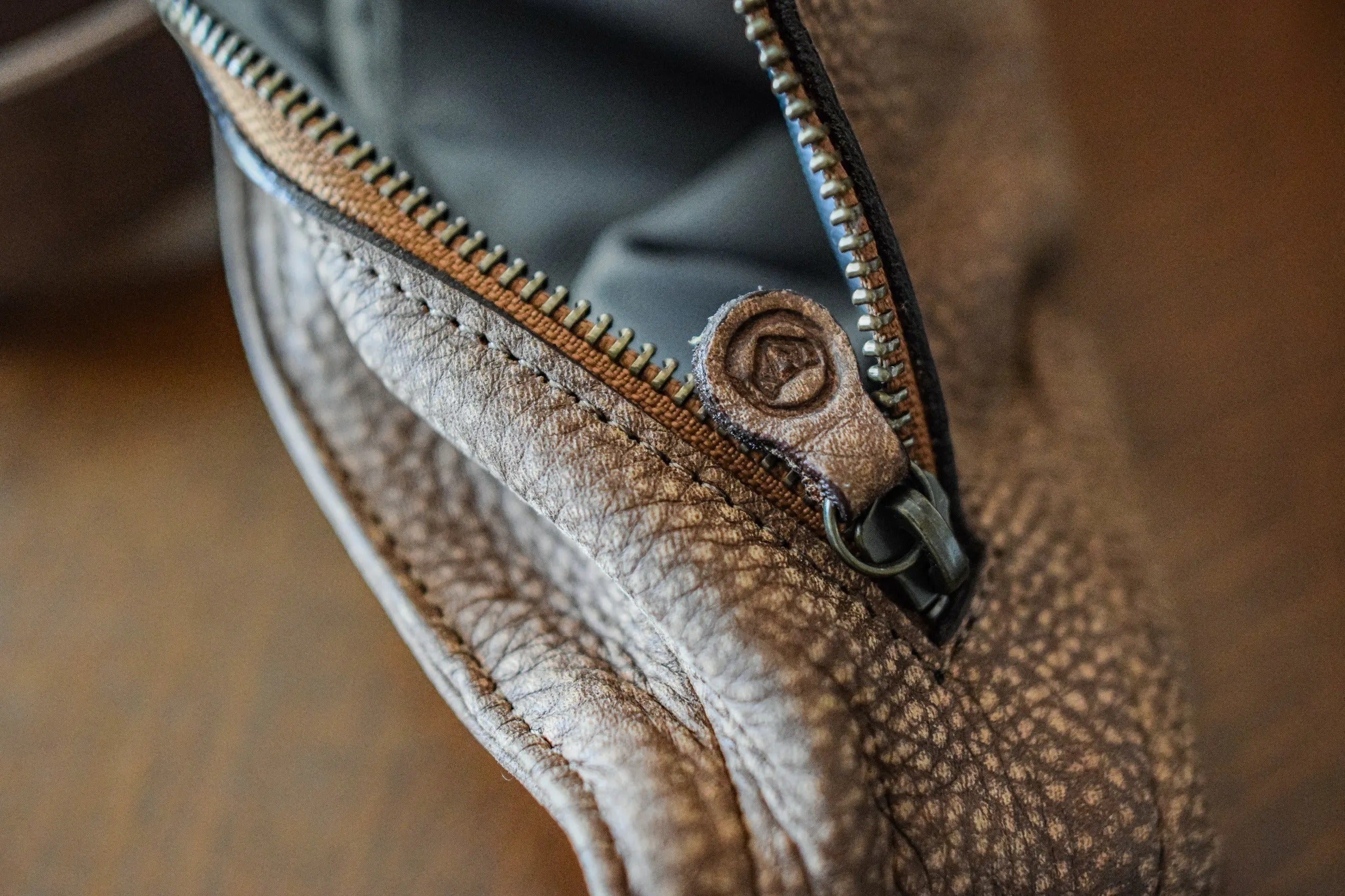 革の質感と、男らしい無骨なデザインはアウトドアのシーンでもよく馴染みます。取り出しの頻度が高い小物類は、Vortexに収納し便利なサブバックとしてご利用ください!