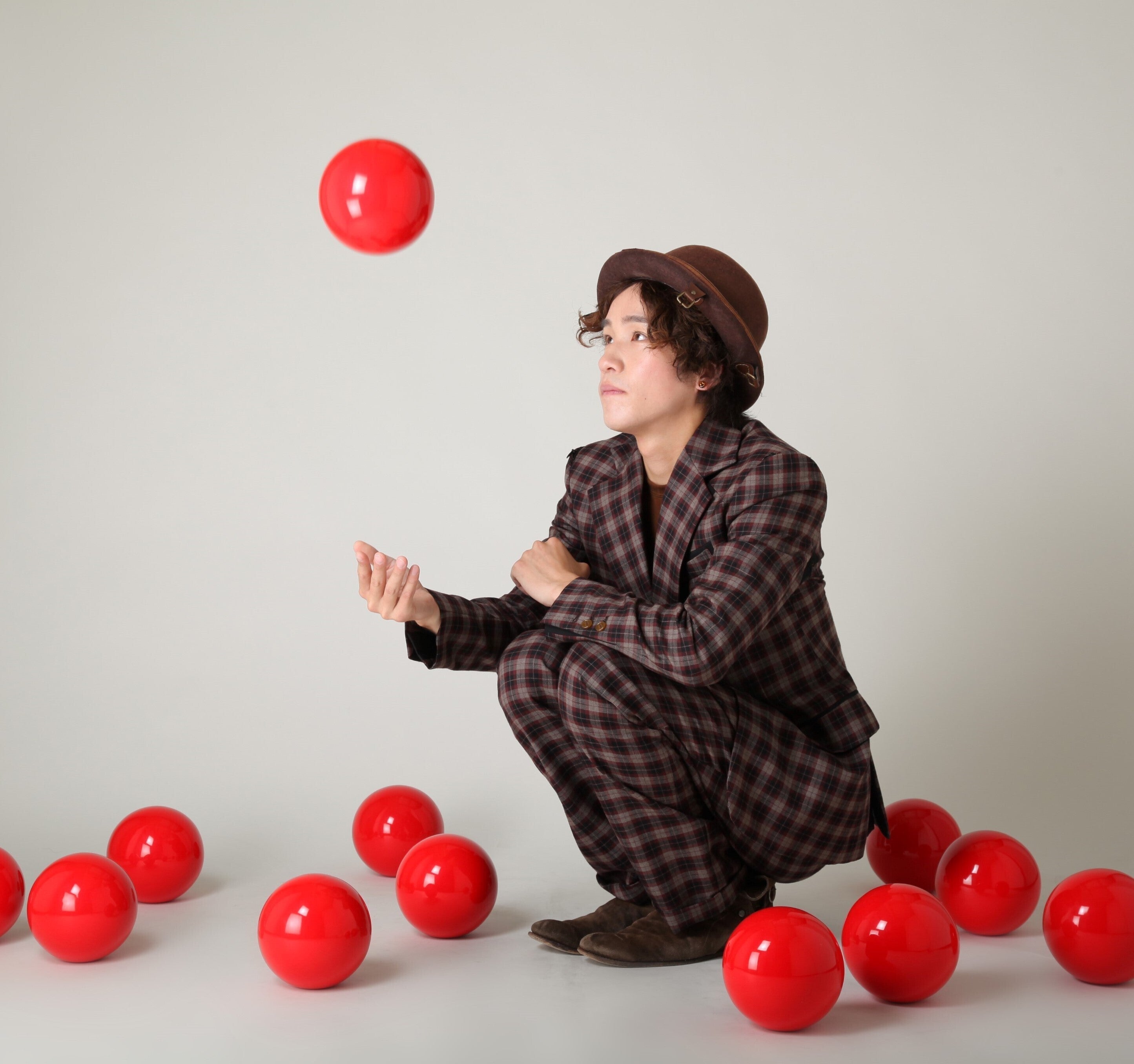 える大きなボールを使ったジャグリングで新たな可能性を探求している。