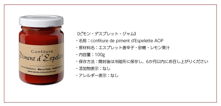 ピモン・デスプレットジャムもフランス直輸入。ヴァンサン・ダリッションが作っています!さまざまなお料理にスパイスとして加え、幅広く楽しんで頂けます。