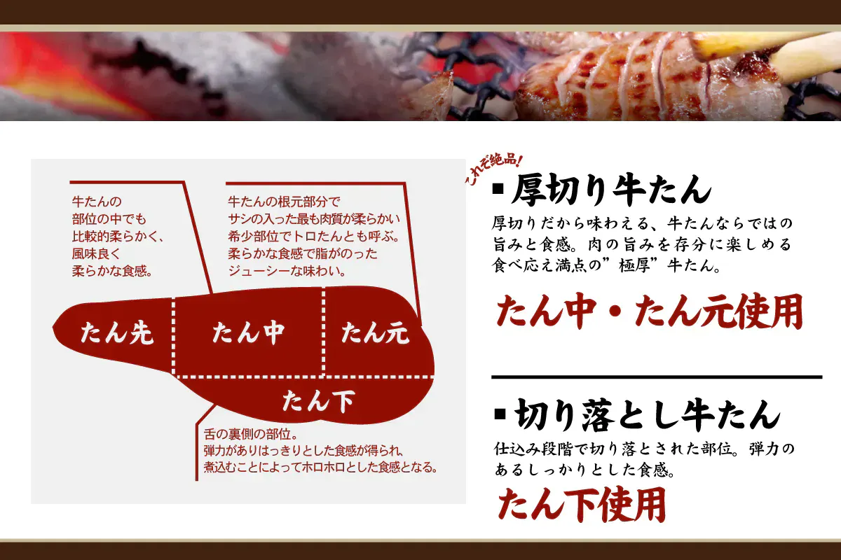 ┗「厚切り牛たん」は、柔らかく焼きに適した部位であるたん元・たん中に限定