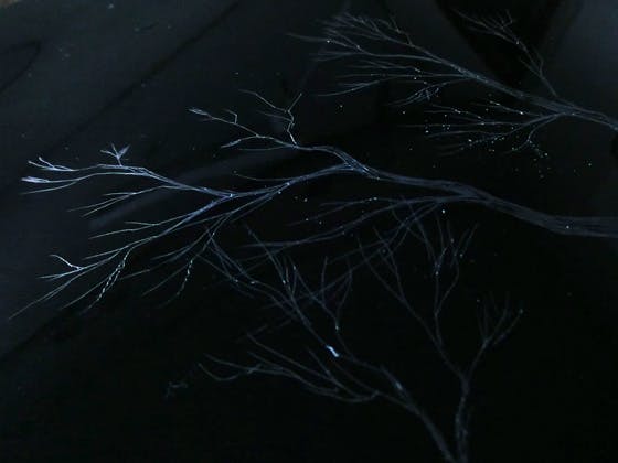 一枚一枚手描きの原画を撮影して作品をつくる「マルチプレーン」技法でオリジナルの短編アニメ『カラスの涙』を制作。完成した作品は高い評価を得て、作者は第18回メディア芸術祭で新人賞を受賞しました。