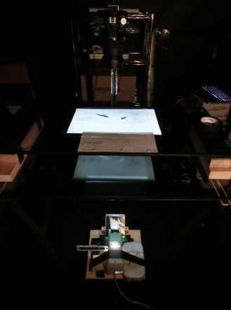 “ 記憶 ” のシークエンスでは背景にスライドプロジェクターを使っています。
