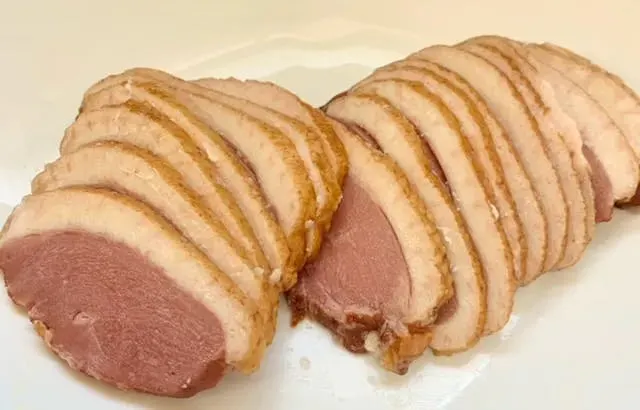 解凍してそのままお皿に盛り付けたら食せる加熱食肉製品の合鴨ロース肉です。