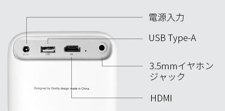 本体底には三脚と接続できるねじ穴がついております。これにより、真上を向けて天井に映像を映し出すことが可能です。プロジェクターの映像はスマホやTVの画面と違い、直接光を発光しないので目にも非常に優しく、寝る前に眺めるのにぴったりです。