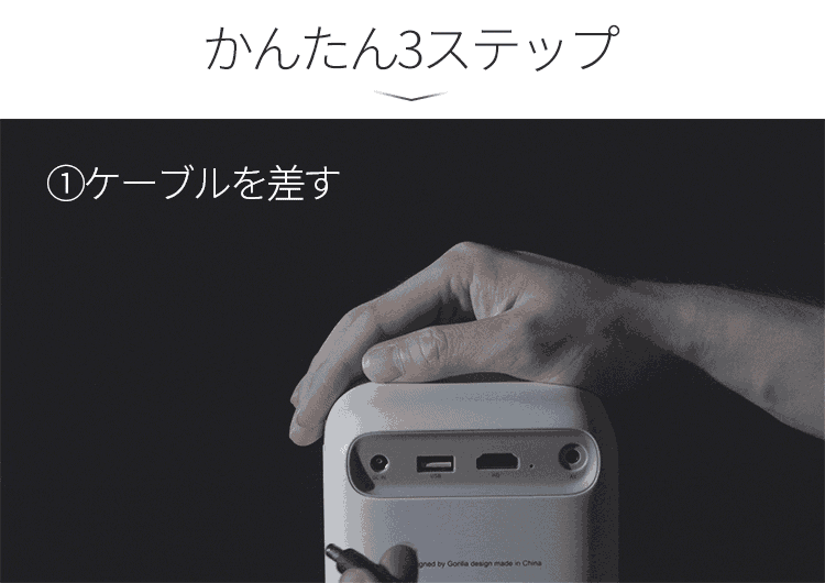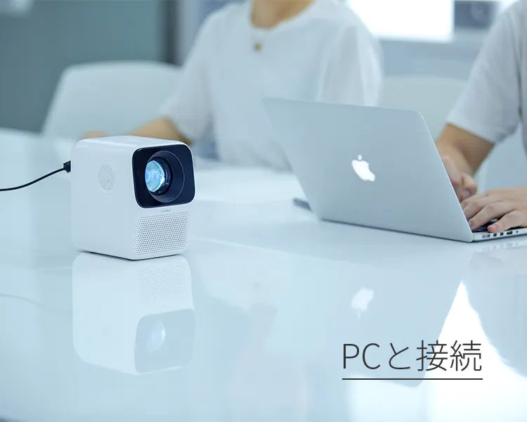 「CUBEE」の魅力はその使いやすさにあります!プロジェクターは高機能なものほどさまざまな設定があり、使い出したら便利なのですが、セッティングに時間がかかります。一方「CUBEE」はケーブルをつなぐだけなのでとってもかんたん!ささっと出して気軽にお使い頂けます。