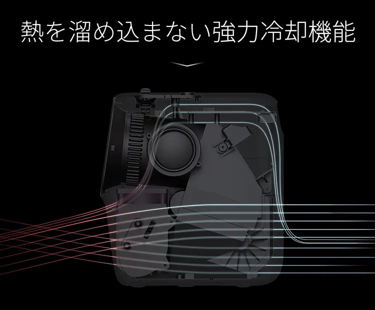 「CUBEE」は強力な冷却機能で「レンズが熱くなる」のを軽減します。本体内部の二つのファンは、後ろのラジエーターとチップ処理装置の上から空気を通すことにより本体を冷却し、LEDライトの寿命を長引かせます。