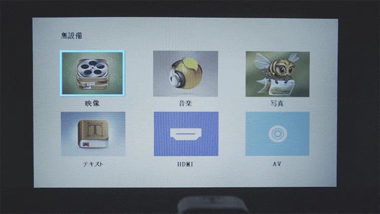 ※白い壁に映し出すようにして下さい。表面の凸凹が少ない程、映像がくっきりハッキリ映ります。