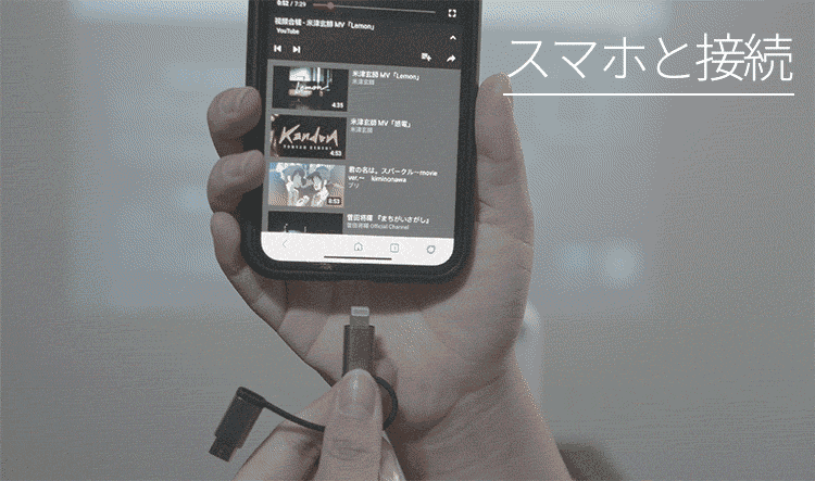 スマホ画面とつなげて、撮影した動画・LIVE映像・Netflix・Hulu などを投影すると、小さな画面から大きなスクリーンへと世界が広がり、感動の大迫力で映像を楽しめます。