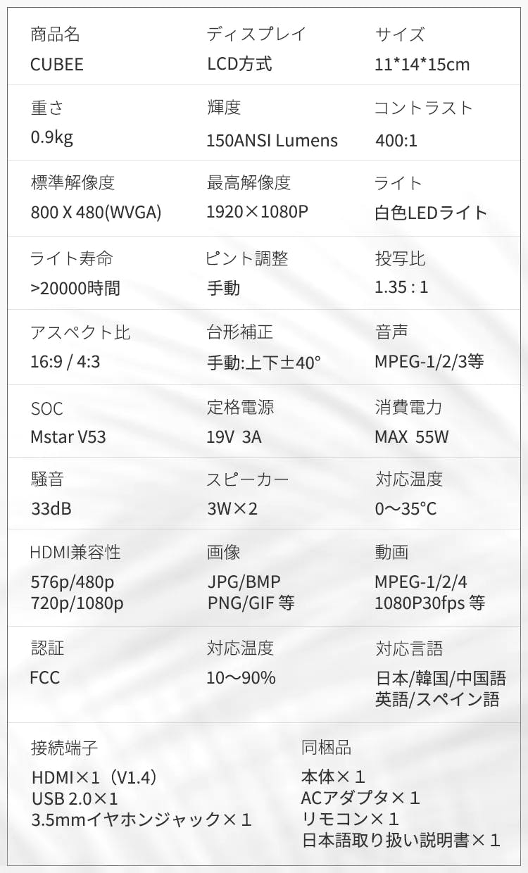 お値打ち品とあなどるなかれ、「CUBEE」の製品スペックは高価格なプロジェクターにも引けをとらない優れものです。1万4000円を割る価格でこの性能は、コスパ抜群!エントリーモデルの最高峰です‼