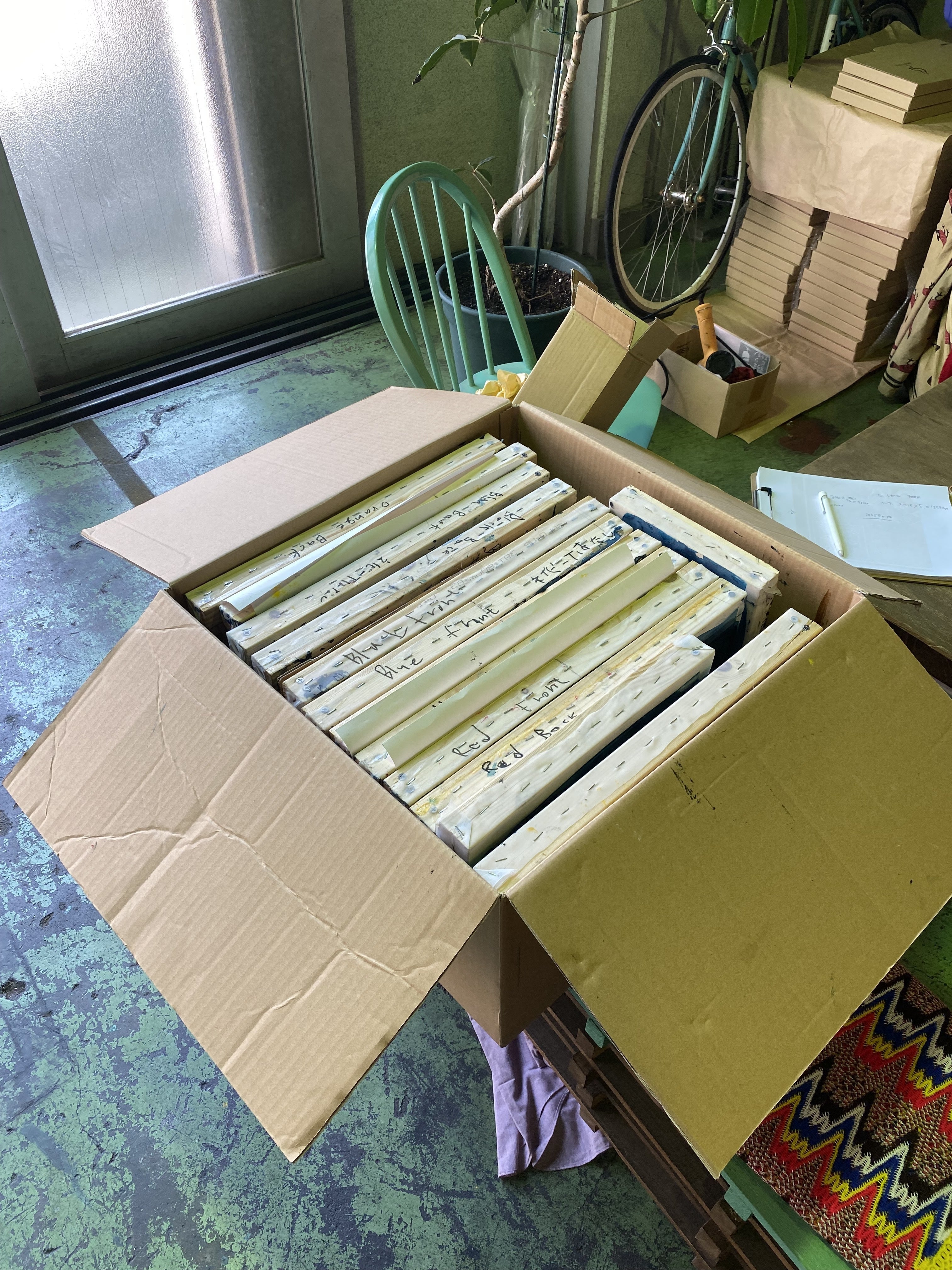 こちら、一枚のtシャツに使用される版の数になります。tシャツの表面も裏面も両方手刷りのため、1枚1枚とっても時間がかかります。