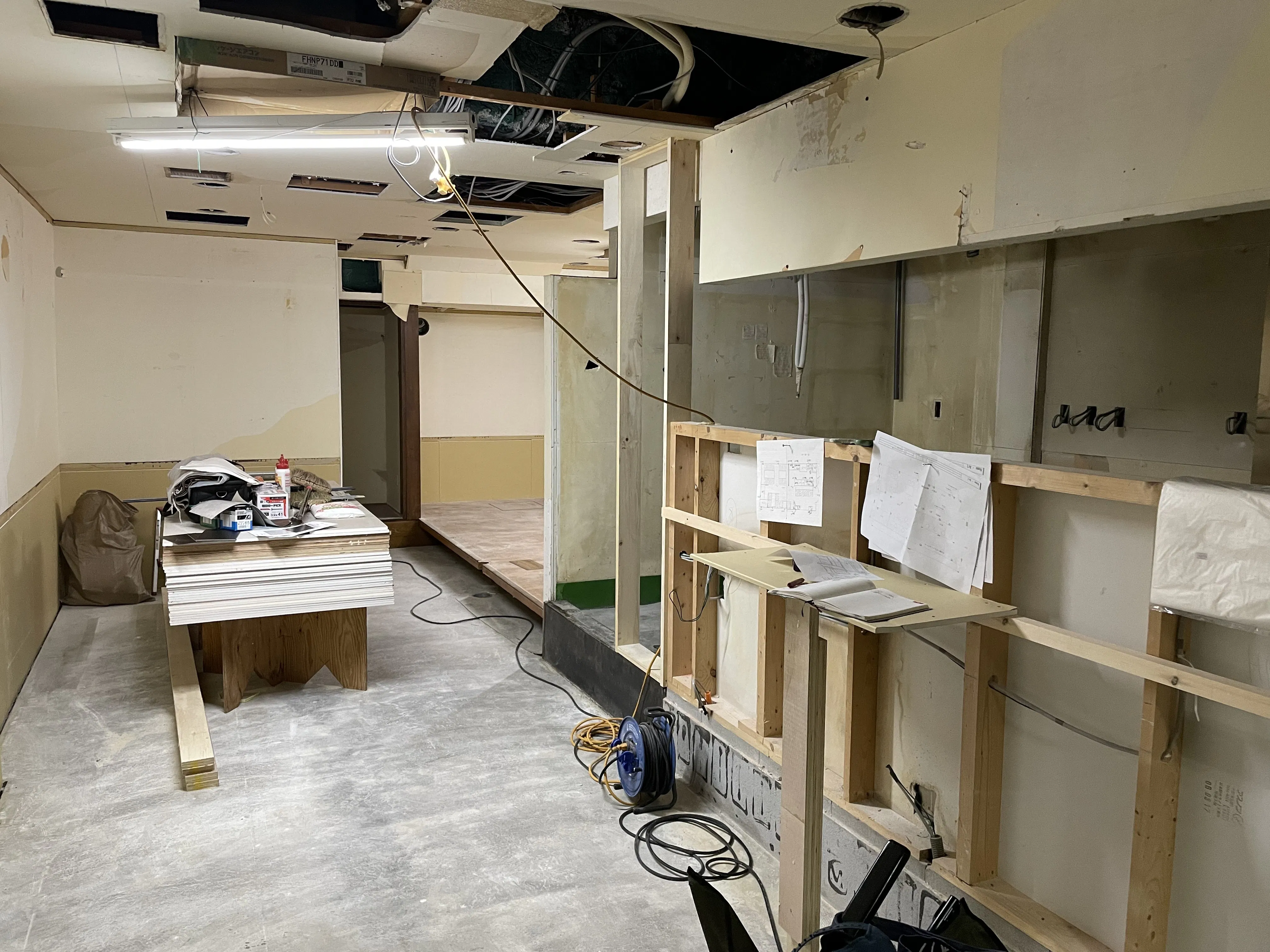 壁、天井、照明、空調、全て既存設備から取り替えます。