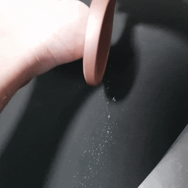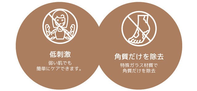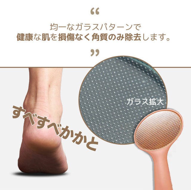 ・ガラスに埋められた数千個のマイクロン単位の粒が角質だけを除去!