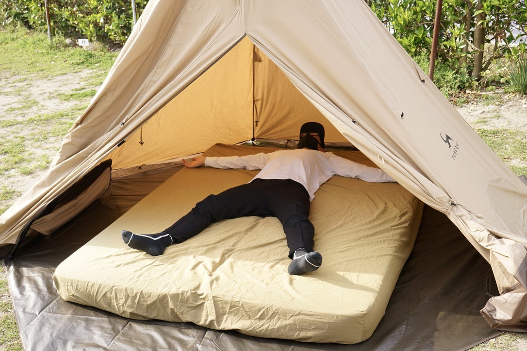 ・厚さ15cmのマットレスで地面のデコボコ、冷気を遮断し快適に眠れる