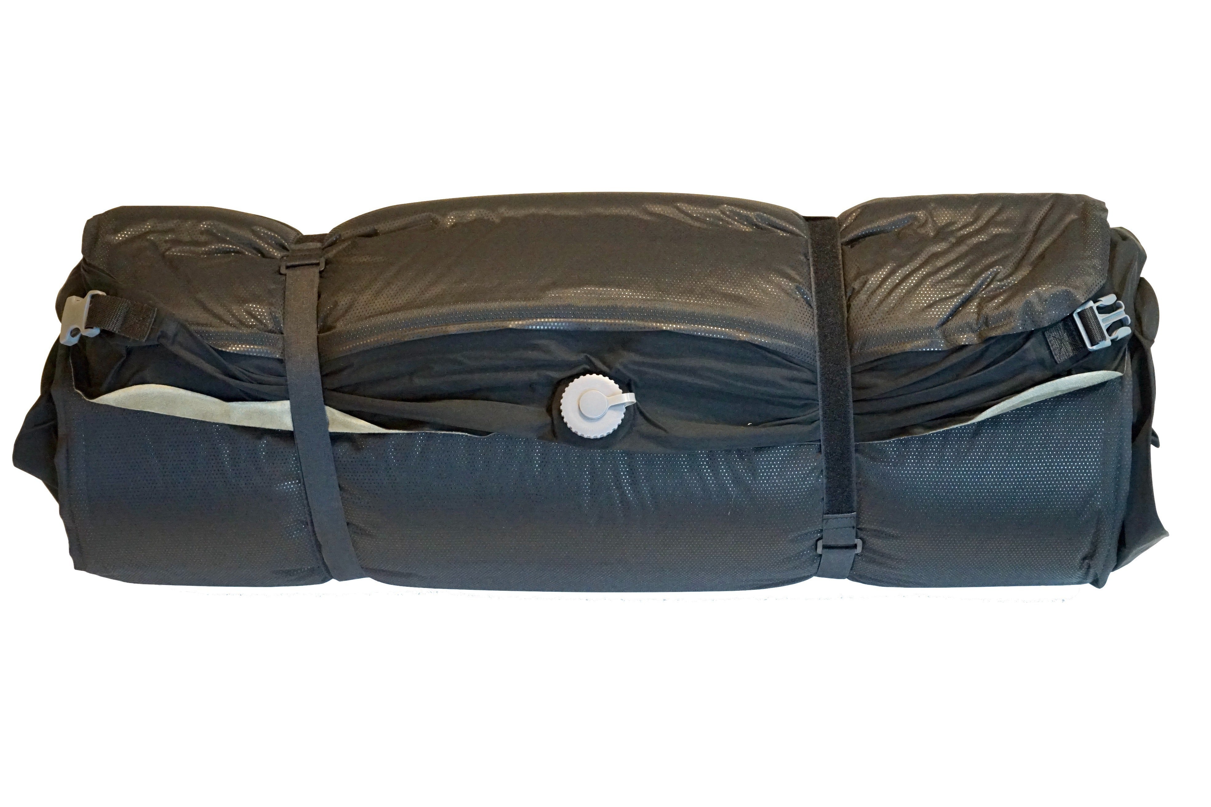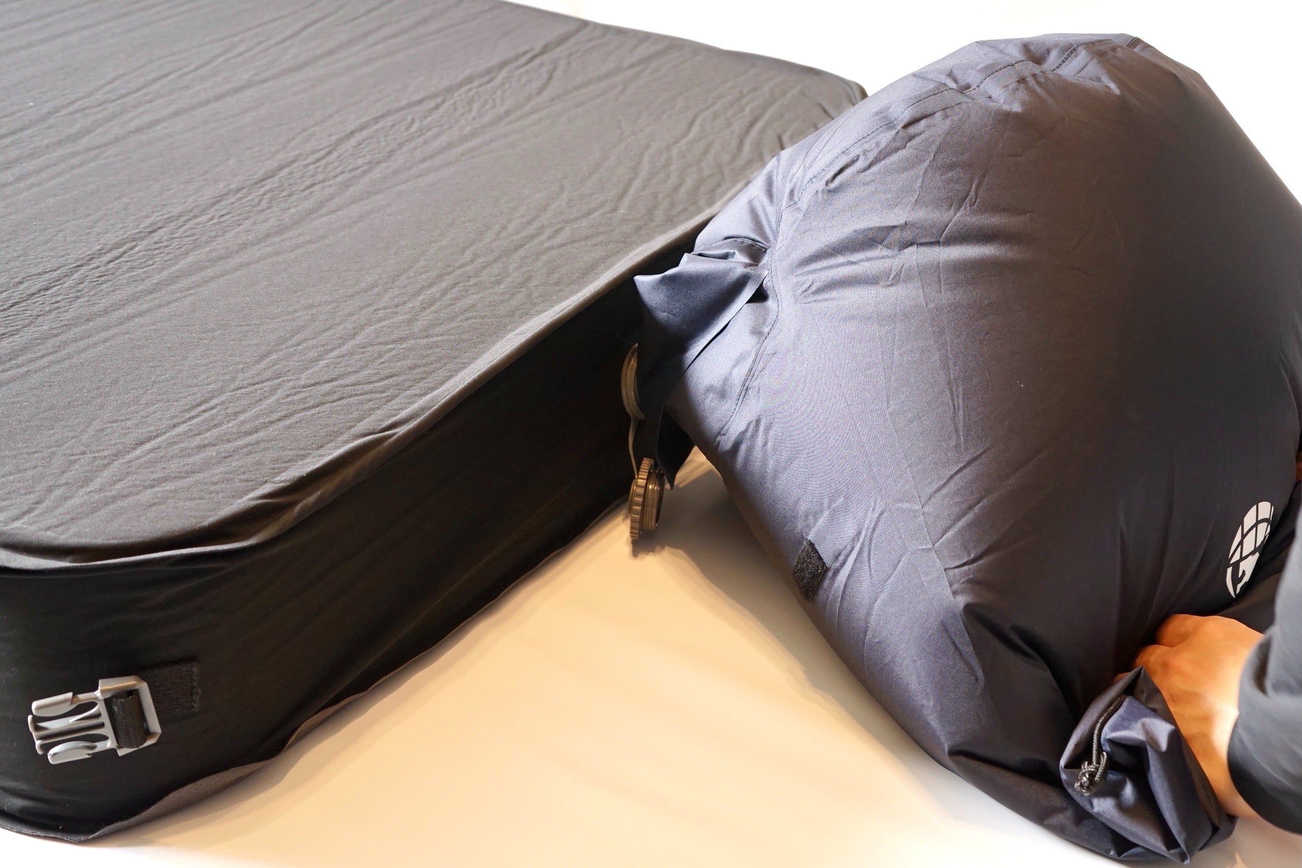 収納バッグはエアポンプになるので膨らみが足りないときやマットを硬くしたい時にご使用ください。