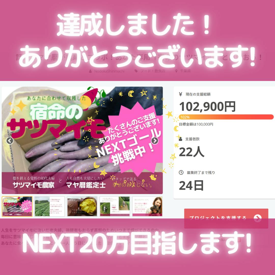 多くの方々のご支援をいただき 8月20日 に目標を達成しました!