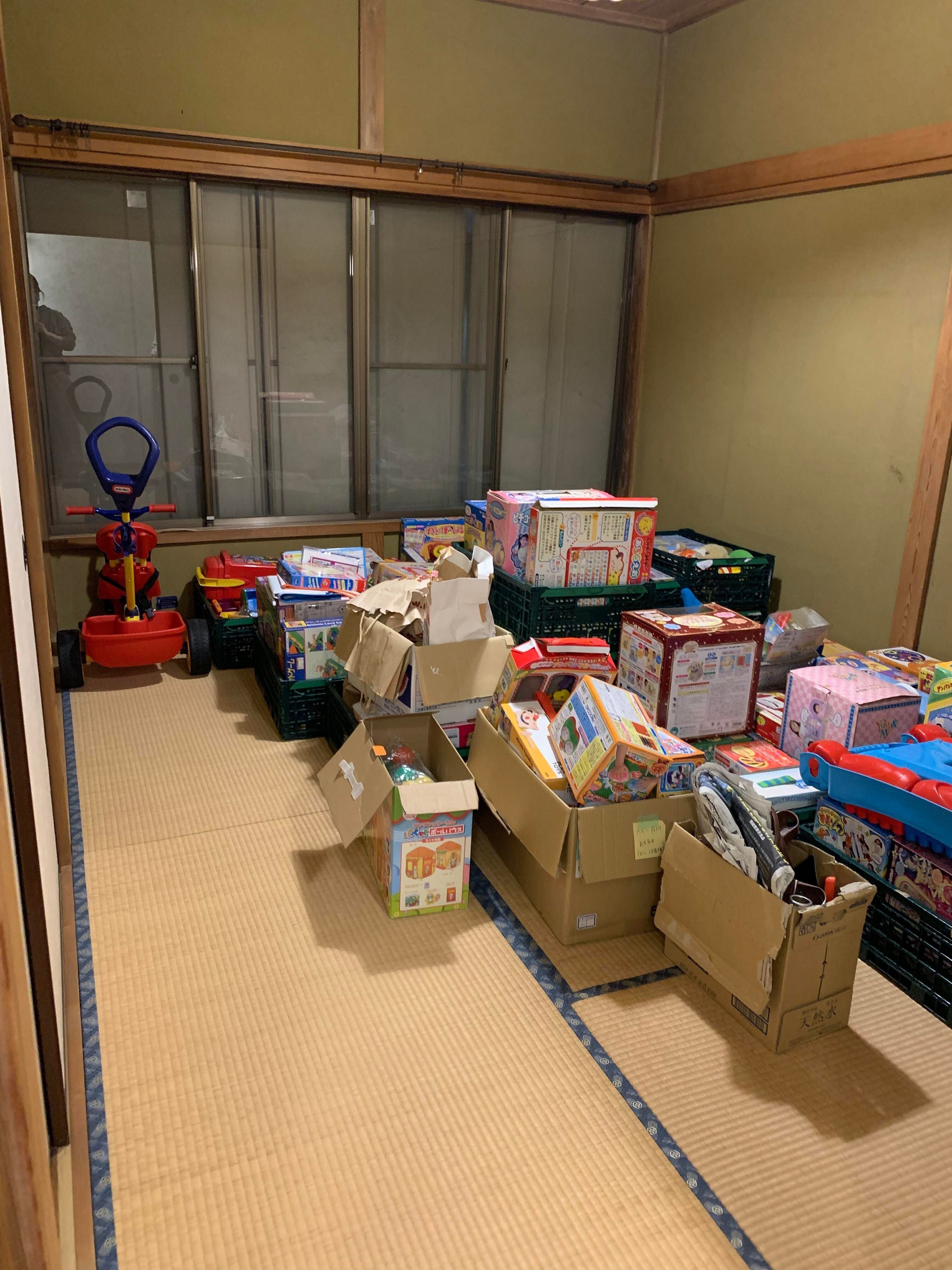 本日はボランティアさんのお力も借りて、おもちゃ図書館2階の和室を掃除し、おもちゃを運び込みました。