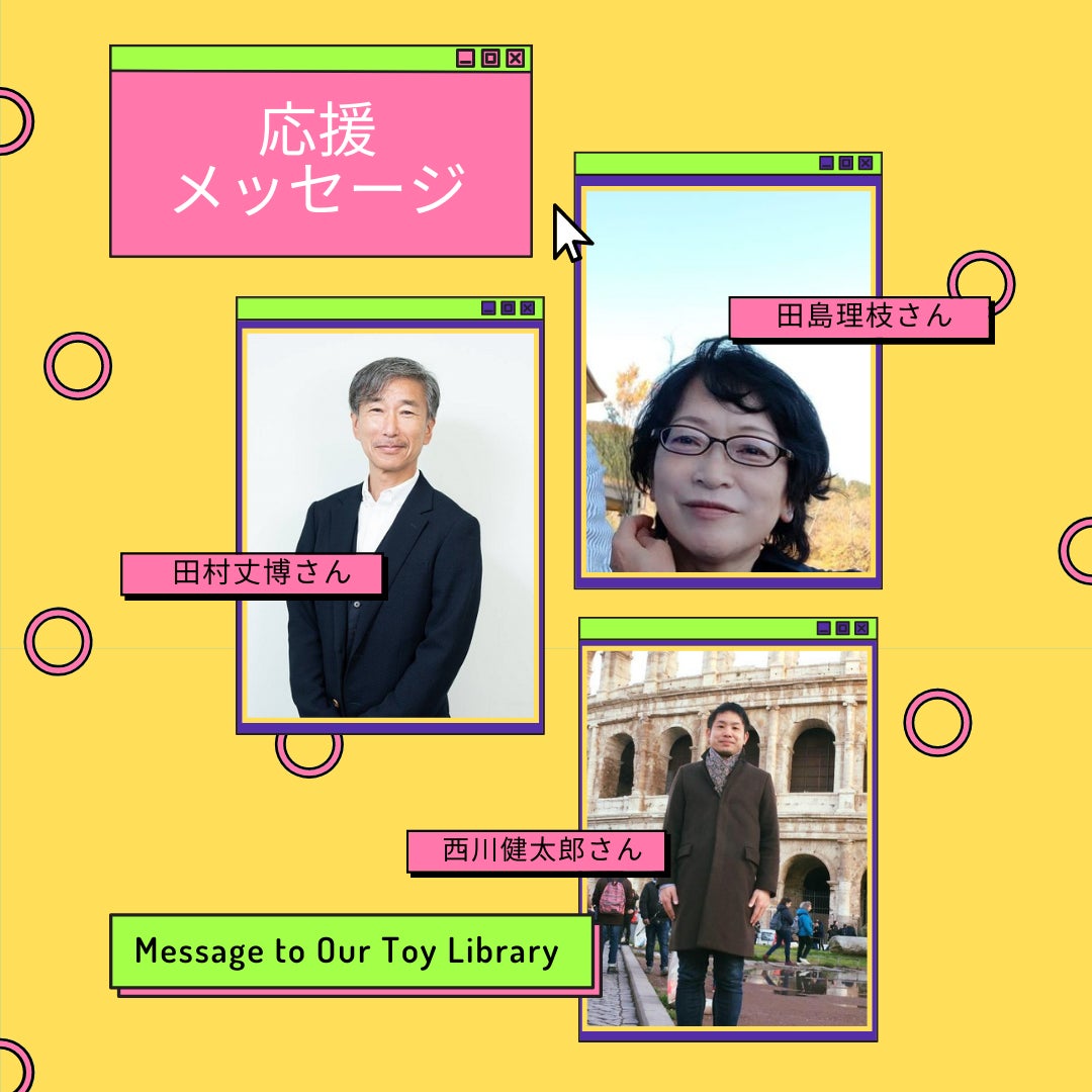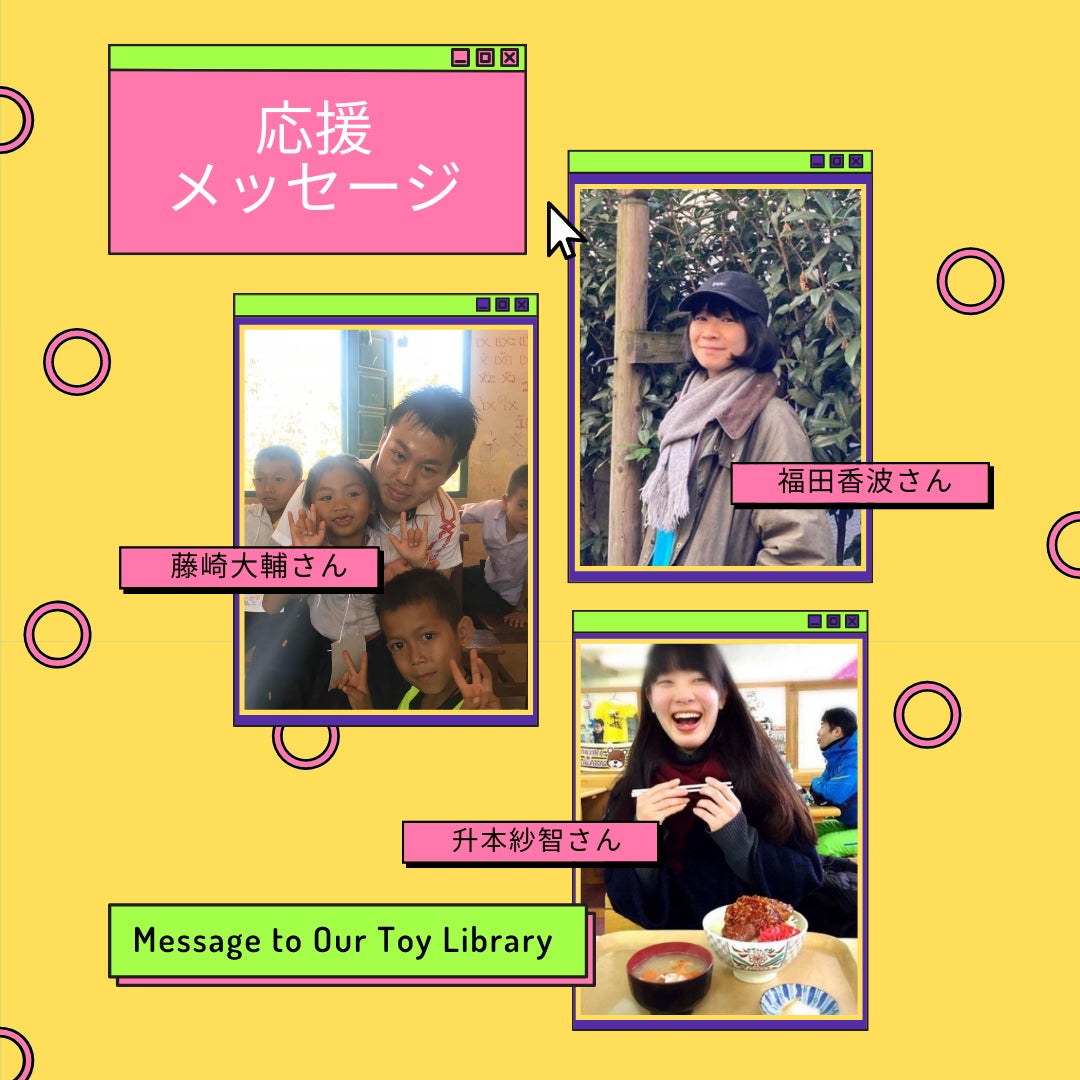 こんにちは!足立区おもちゃ図書館プロジェクト発起人の栗野です。日頃の活動を支えてくださっているボランティアさんや、活動をサポートしてくださっている地域の方々から応援メッセージをいただきましたので、ご紹介させていただきます!最終日前日は第9弾です!!プロボノ 小泉奈桜子 さん「大学院まできて貧困や格差などの課題について学んでいるのに、何も実践に関わっていない…」と悶々としていた折、栗野さんにお声がけいただき活動に関わるようになりました。その後教員となり、なかなか活動に参加できなくなってしまいましたが、今も変わらず大切な活動だと思っています。 「おもちゃ図書館」は、自分の子ども時代にこんな場所があったら楽しかっただろうな~と思いながら、アイデアを伺いました。 ホッと肩の力を抜ける場所は、どんな人にとっても必要だと思います。 この場所が、誰かにとってのそんな居場所の一つになることを願っています。ボランティア 宮内康さんボランティアに参加させていただいて、あたり前のことをあたり前にする世の中に、目の前にゴミが落ちていたら拾って捨てる、困っている人がいたら、手を差しのべられる人が声をかける、あたり前だが、損得勘定の現代社会、気付く、思う、考える、行動することが出来ない、出来ないのは、あたりまえ、そのような教育、環境で育ってきていない、ボランティアに参加するたびに思う、幸せだったこれまでの人生、若者に、ボランティアを! 相手を思うことにより、自分自身を振り返り、共に助け合いの生活、世の中を取り戻してもらいたい、それらの一回一回が、困難な子供達に繋がる一歩だと感じております。 ボランティアをすることは、自分自身が成長でき、相手のためだけではなく、自分自身までも救われる。 一人でも多くの人に知ってもらいたい、動いてもらいたい、助け合いの生き方