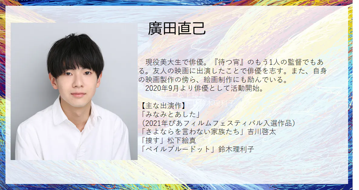 映画『待つ宵』を自主制作しており、私がこの作品の監督・脚本を務めております。
