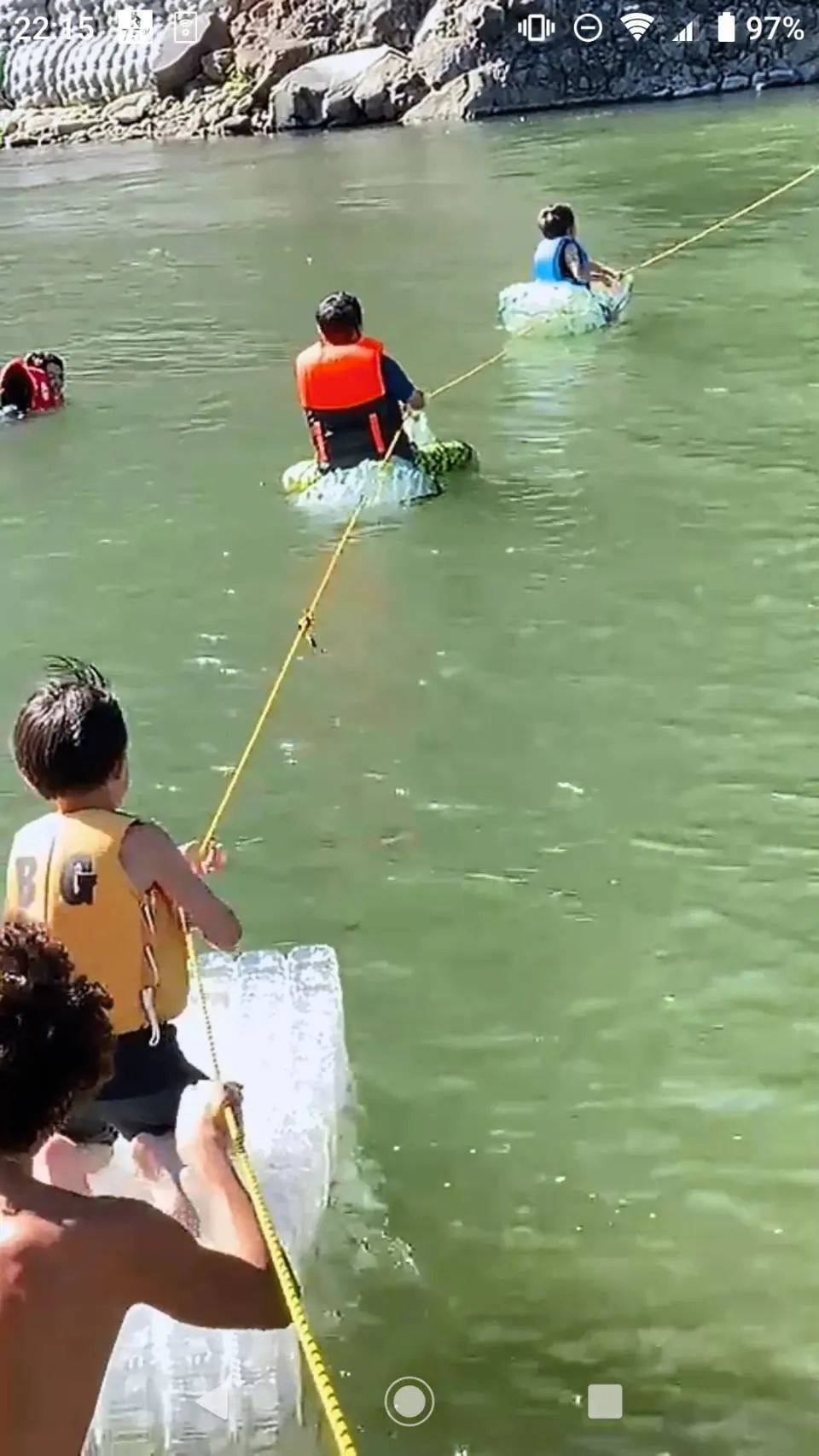 川の岸と岸に一本のロープをわたしそこを伝いながら進むと、小さなキッズたちも一人でも楽々と川を渡ることができました。※万が一ロープを離してしまった時のこともちゃんと考えて下には常時大人が見守っています
