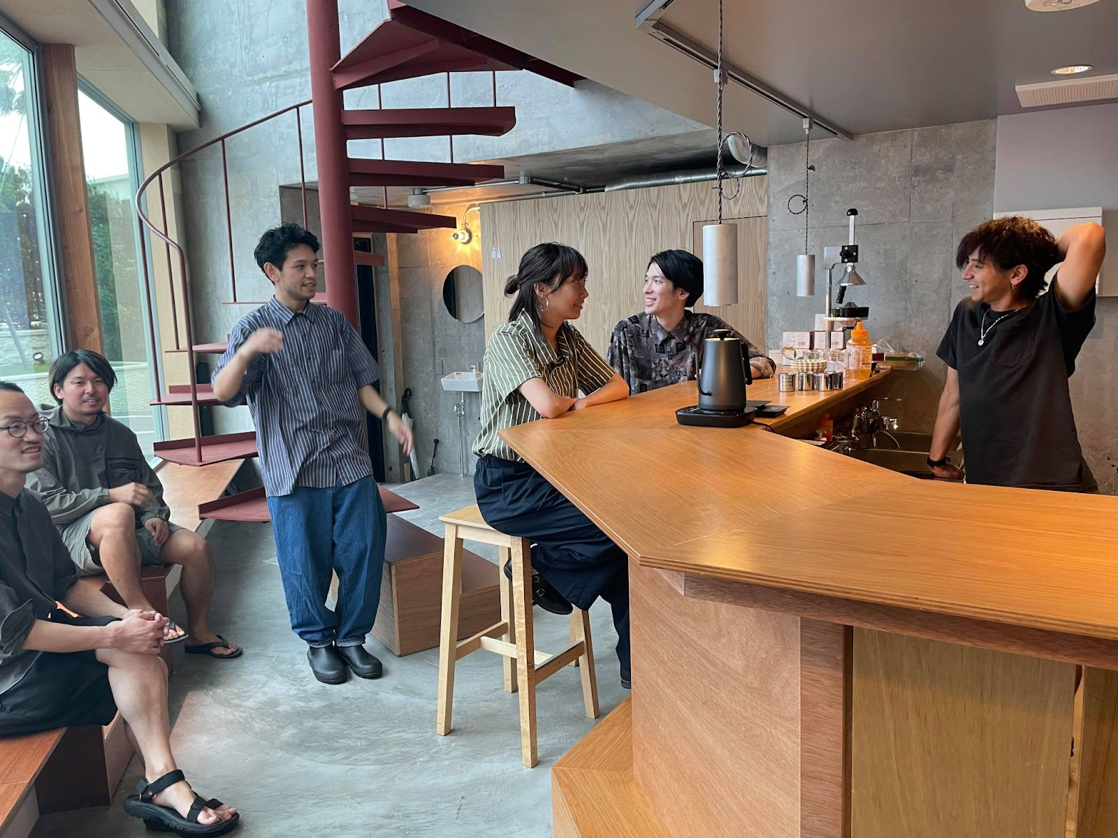 1階は、広いカウンターテーブルや、入口横のベンチに座り、スタッフとお客さん、そしてお客さん同士の会話が生まれやすいような空間になっています。