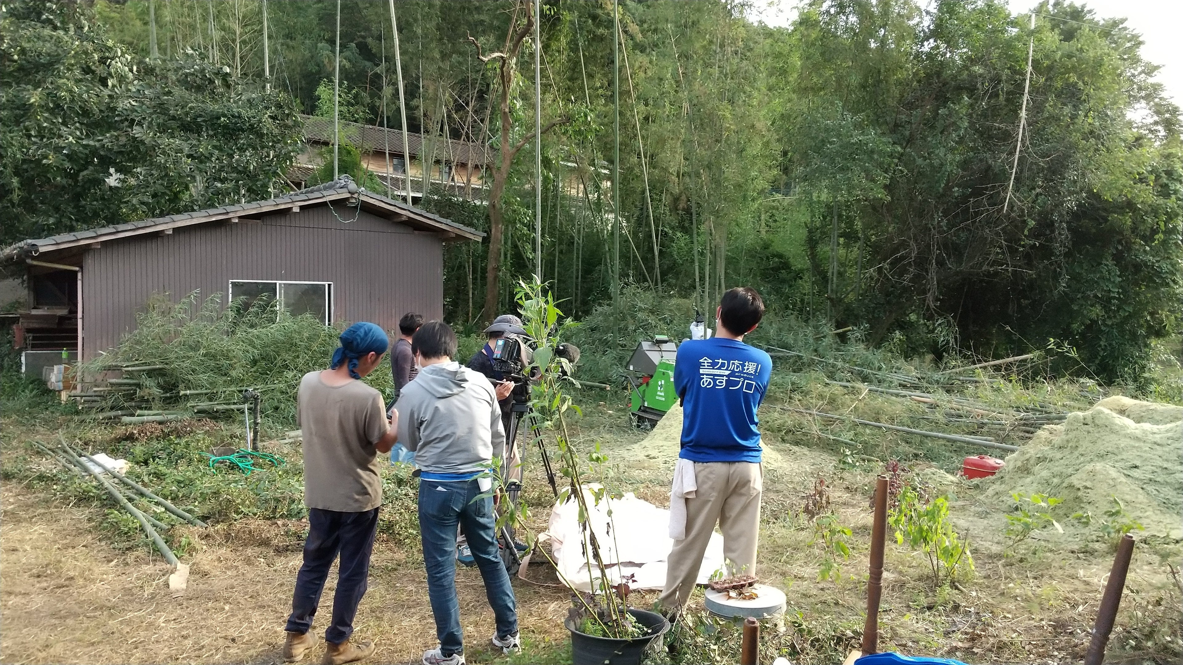 クラウドファンディングと並行しながらハウスの整備も鋭意進めています。先日はその模様をなんと熊本県民TVさんが取材に来てくれました!その日は庭の竹林を伐採し、切り倒した竹はチップに。竹チップは庭に敷き詰めて抑草に使ったり、堆肥にしたりします。さらに古い畳を剥がして床張りの準備。畳は防音や断熱に優れているので、壁に再利用するべく虫干しです。最近また暑さがぶり返す中、1日の作業でみんな汗だくになりました(^o^;;そんなこんなの奮闘が、明後日8/31の「テレビタミン」で放映されます。ぜひご覧になっていただけたらと思います^^