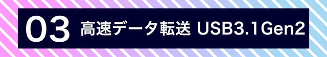 USB3.1Gen2は、データ転送速度 10GB/Sと高速です。