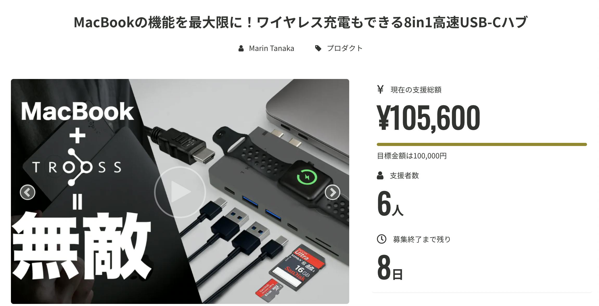 【MacBookの機能を最大限に!ワイヤレス充電もできる8in1高速USB-Cハブ】プロジェクトが、おかげさまで目標達成いたしました!