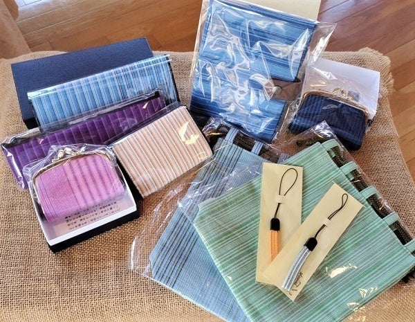 ▲上品で彩りも豊かな真岡木綿の商品たち 市の花も「綿の花」なんです。