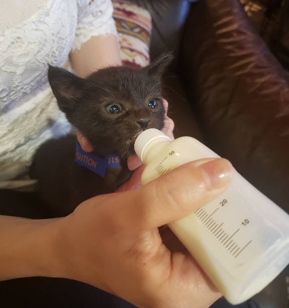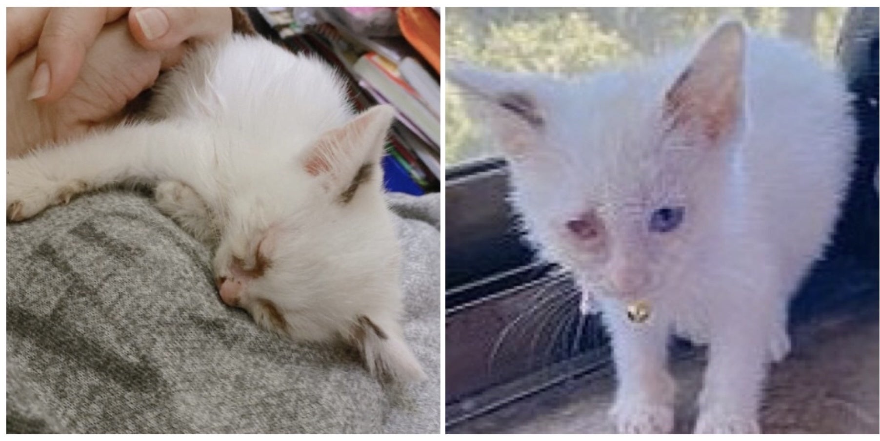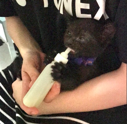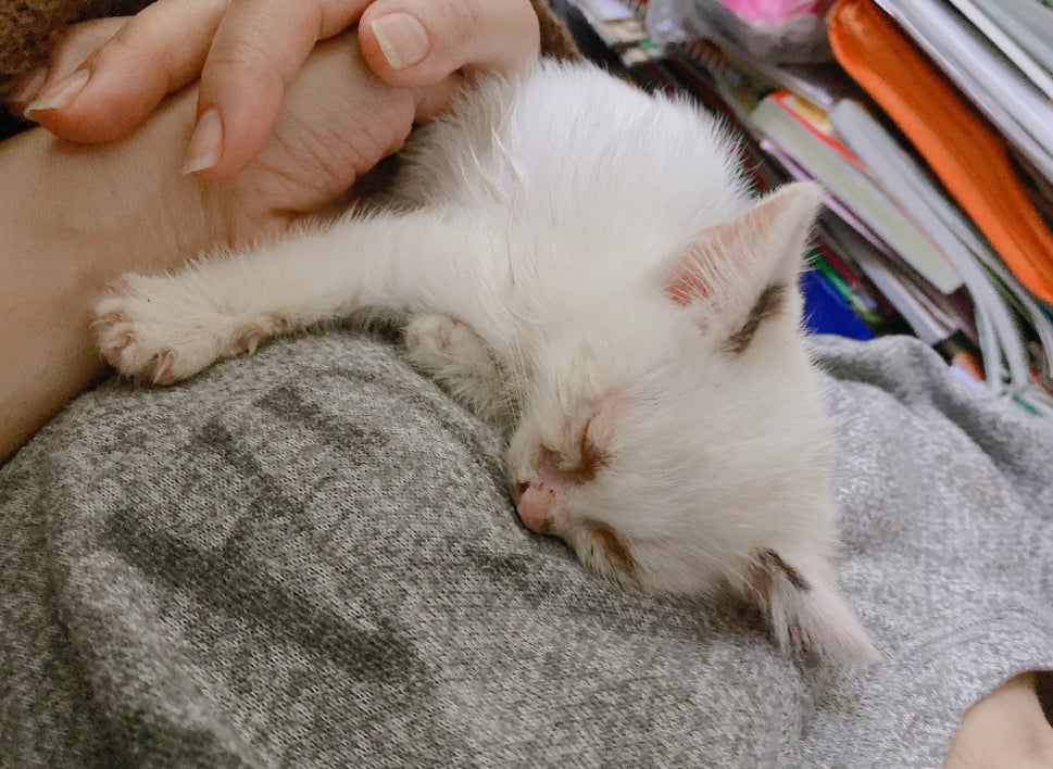 拾った当初の様子先月の大雨で親猫とはぐれてしまったのか川のようになった道路を彷徨っている所を保護された子猫。