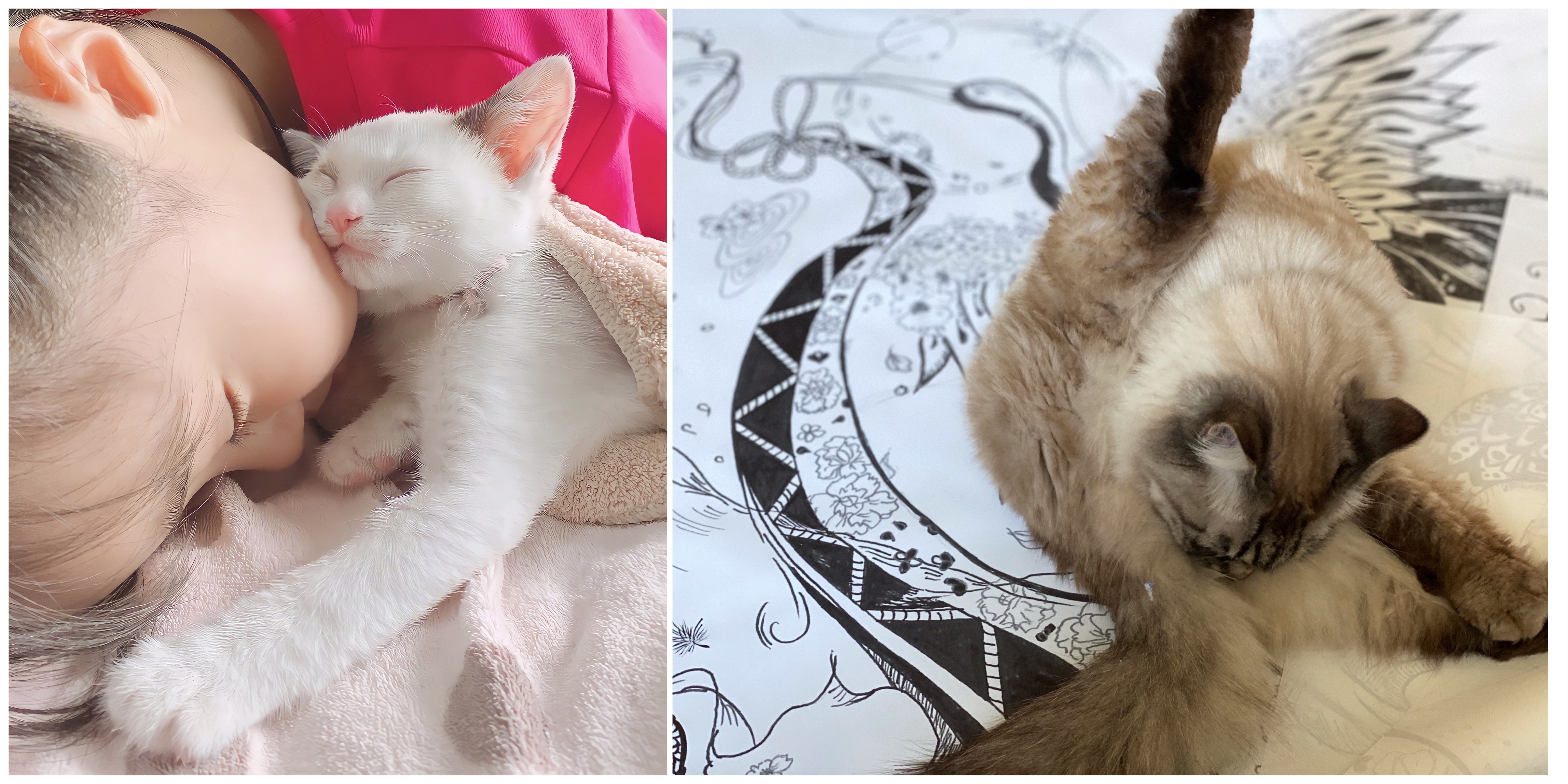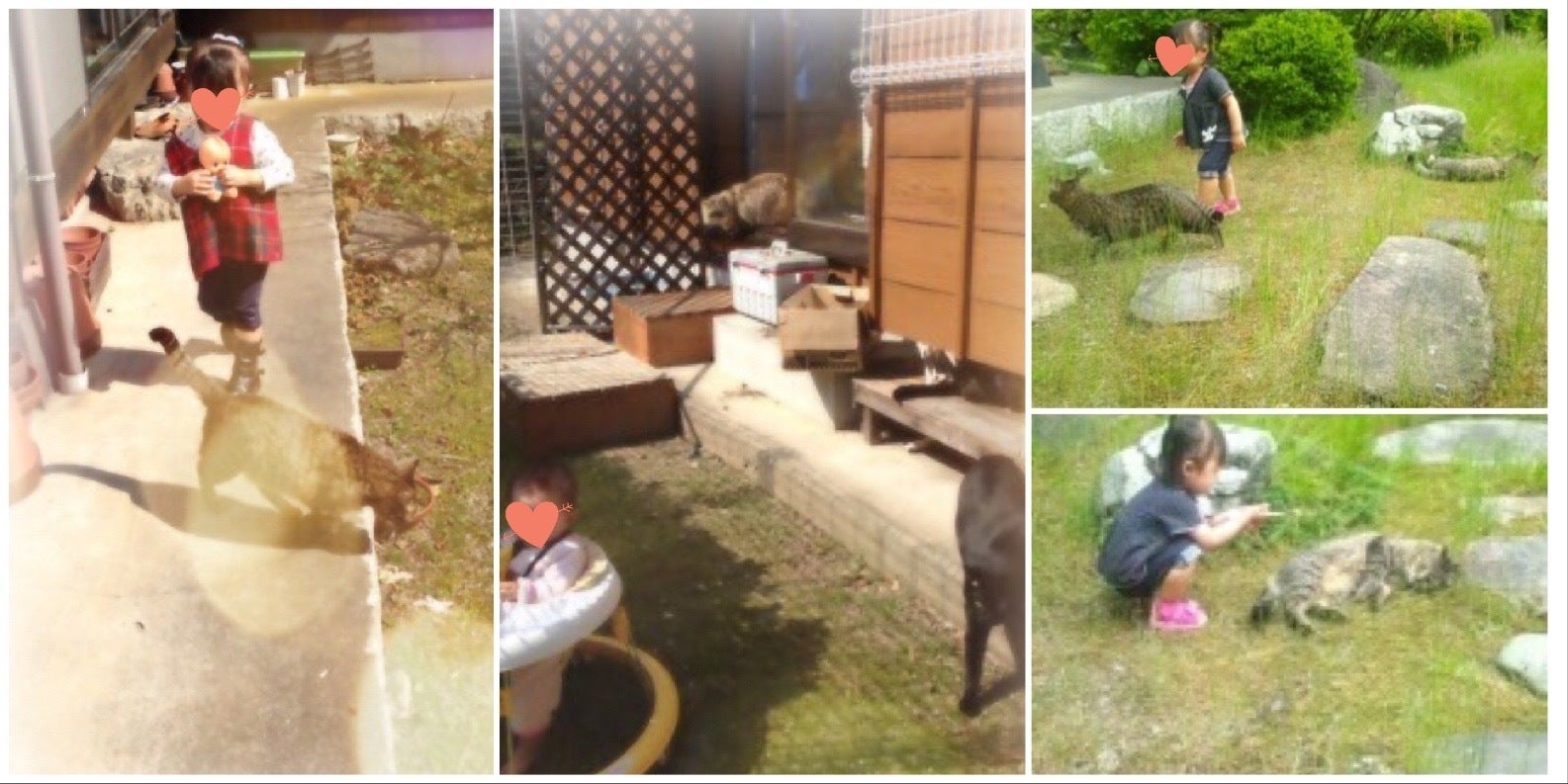 10年前からの写真も含まれているので少し画質が荒いのですが、自身が幼少期の頃から始まり、2人娘を出産してからも野良猫や保護した猫たちの飼育を行っていました。