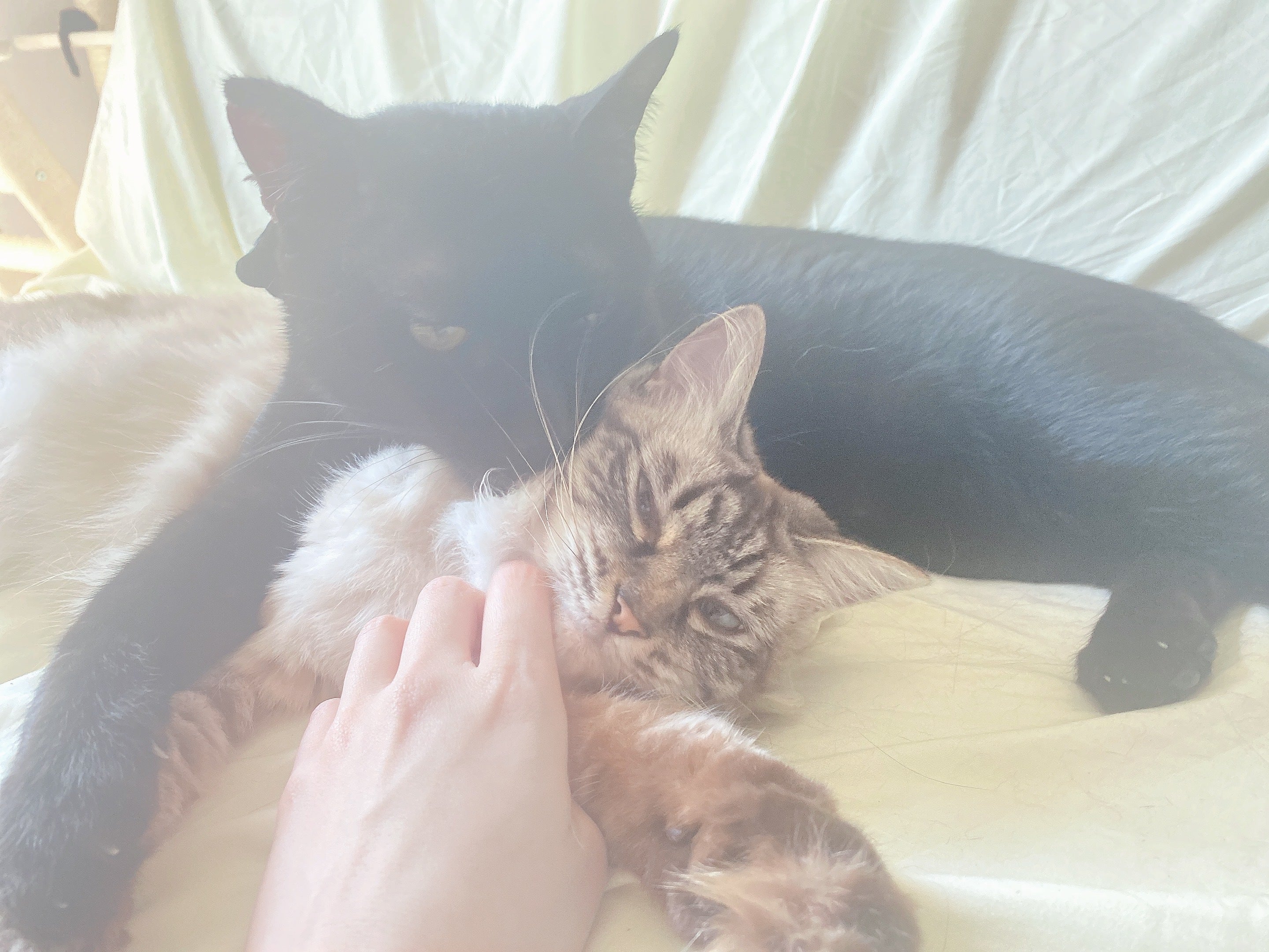 2022/09/18 16:29こんにちわ*こちらでは前記事の続き、新居地になってからのオムライスとメロンパンのようについてお話ししたいと思います。私はというとアルバイトでコツコツと資金を増やし少しづつアトリエの拡大を目指し引っ越しの荷造りから運び出しなどを進めバタバタとしていたのですが、もともと掃除機の音や配達員の方が来るだけでも大騒ぎな、とってもとっても怖がりなオムライス。普段は噛み癖もひどく暴れ馬な超絶内弁慶なオムライスなのですが中身はとても繊細なため正直引っ越しの移動も不安の一つではありました。そんな予想が見事に的中してしまい、荷物の運び出しを始めた頃からオムライスは自分のお気に入りの寝床から出てこないことが増えていってしまいました。※食いしん坊なので餌とお水はしっかり食べていました。とはいえあんなにやんちゃなオムライスがずっと静かにこもっているのはとても心配。運び出しが終わってしまえば広くなったお家で駆け回ってくれるかな?と安易に考えてしまいそのまま新しい新居へと移りました。ですが、オムライスからしてみるとずっと狭い1ルームの空間で育ち、そこで2年を過ごしたためオムライスの知っている外の世界はベランダから見える景色と毎日ご挨拶にくるカラスと雀たちが囀りを繰り返している様子だけ。急に知らないところに連れてこられ、広くなってしまった空間にオムライスは恐怖しかなかったようで、元のベットももちろん持ってきていて、場所を変えたりと工夫をしてみたのですがお気に入りのベットにも寝てくれず、結局クローゼットを力ずくでこじ開けてクローゼットから出てきてくれなくなってしまいました。私が近づくだけでもシャーーー!という威嚇の嵐。3日ほど様子をみてクローゼットにお水と餌は準備していたのですがみるみると元気がなくなって行ってしまい、鼻と手に瘡蓋のようなただれが起き始めてしまいました。少し甘えにきてくれた時の様子不安になり、今のオムライスを病院に連れていくこともオムライスにとってはストレスなんだろうと感じましたが命には変えられないので無理にオムライスを近くの動物病院へ連れていきました。獣医の先生に診察を受けたところ、感染ウイルス性、慢性のいずれかの原因を調べる必要があるとのことで検査の結果を待つ間、抗生剤と軟膏を頂いて帰宅しました。1週間後、検査の結果と再診のため病院を訪れ、診察を受けたところ、オムライスの皮膚からは感染ウイルスは見つからず、ストレスによる免疫力の低下から起こる慢性化した症状ではないかとのことでした。もともとの体質でストレスを感じやすく、そのストレスにより免疫機能が大きく低下してしまう病気のようでこの症状に完治はなくストレスで免疫が低下してしまうたびに治療が必要になるそうです。免疫疾患の一種。幸い命に別状はなく、一生付き合わないといけない体質ではありますがお薬も喜んで飲んでくれるのでようやく一安心。最初の頃は病院に行くのがわかると察知がとてつもなく早く、暴れ散らかしていましたが今では観念して大人しく病院へ向かいます*症状も、薬の投与は続けていますが落ち着いてきて今ではすっかり元のオムライスくん。2キロ痩せましたが体格はもっと大きくなりました(笑)獣医さんも「オムライスくん、大きいですね〜。今で2歳ならまだ大きくなりますね(^ ^)」と言われ。笑お母さん猫も野生の外猫さんでしたがすごく小柄だったのできっとお父さん猫が大きかったのでは?とのこと。お父さん猫は私も誰も知らないのですが太っていないのに体格の大きなオムライスを見る限り血筋だけは野生のハイブリットを秘めているんだろうなと思いました(笑)内面は小鳥のように繊細ですが、、、笑一方でメロンパン。広くなったお家、大きくなったキャットタワー、ベランダに窓も増え、毎日の探索に大忙し!お家広ーい!わーい!ベランダ広ーい!わーい!キャットタワーおおきーい!わーい!とでもいっているかのようにオムライスとは正反対に新居を謳歌するメロンパン(笑)怯え切っているオムライスにも「そんなんじゃ生きていけないよ?」とでもいいたげでした(笑)あんまりにも対照的な2ひきなので、ある意味それがいい意味で刺激になったのか今ではオムライスもベランダを覗いてみたりメロンパンのお尻にくっついて、私の目の届く範囲まではお散歩を楽しむようになりました*(物音が鳴るとシュッと帰ってこれる距離w)キャットタワーも、相変わらずの巨体で壊しそうですが楽しそうに使ってくれています*オムライスなりのギリギリのラインで日向ぼっこ(笑)余談ですがメロンパンはすごく豪快にバリバリバリっと何かを発散するかのように爪を研ぐのにオムライスはこしょこしょこしょ、、、と小さく爪を研ぎます(笑)そんな大きな手で猛獣のような立派な爪しててそんなので爪、研げてる、、、?笑 と思うほど(笑)メロンパンは女の子、オムライスが男の子なのです