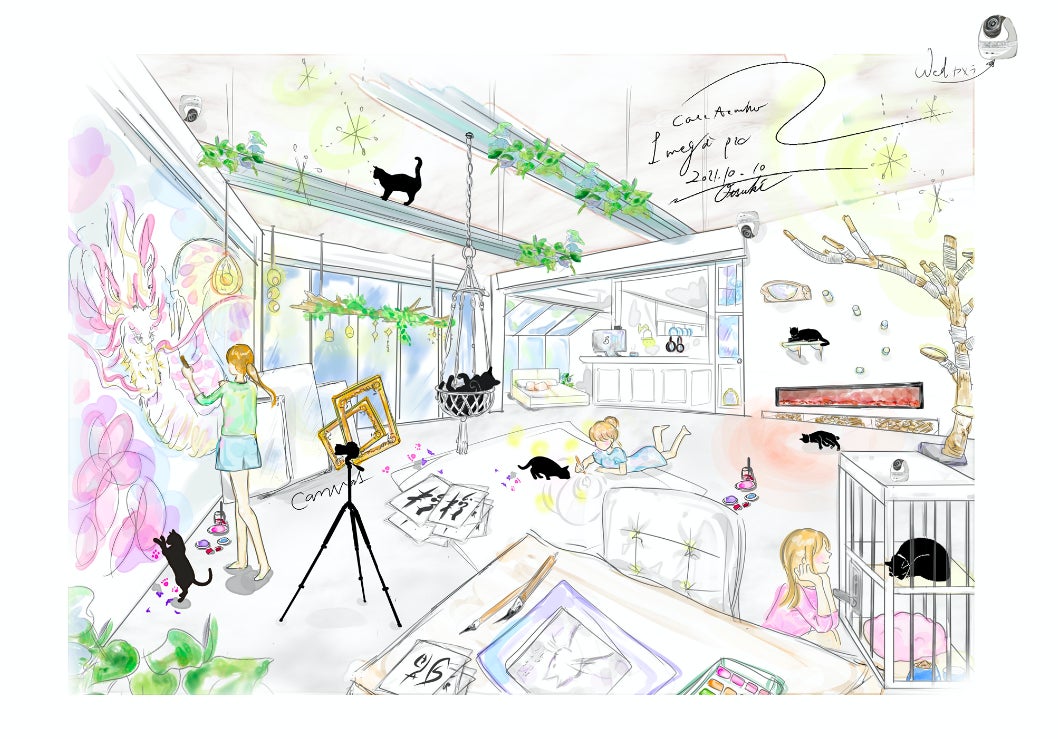 人馴れしていない猫の保護・ケア・譲渡をこれからも継続的に行うために、本業である日本画(アート)と保護猫活動を一体化した完全オンライン型の「人と猫が心を通わせるアートな保護猫ケア施設」"ねこのアトリエ”を開設し、オンラインでのペット相談、ケアの方法、猫の描画などをリモートで発信し継続的な猫の保護活動を可能にします。