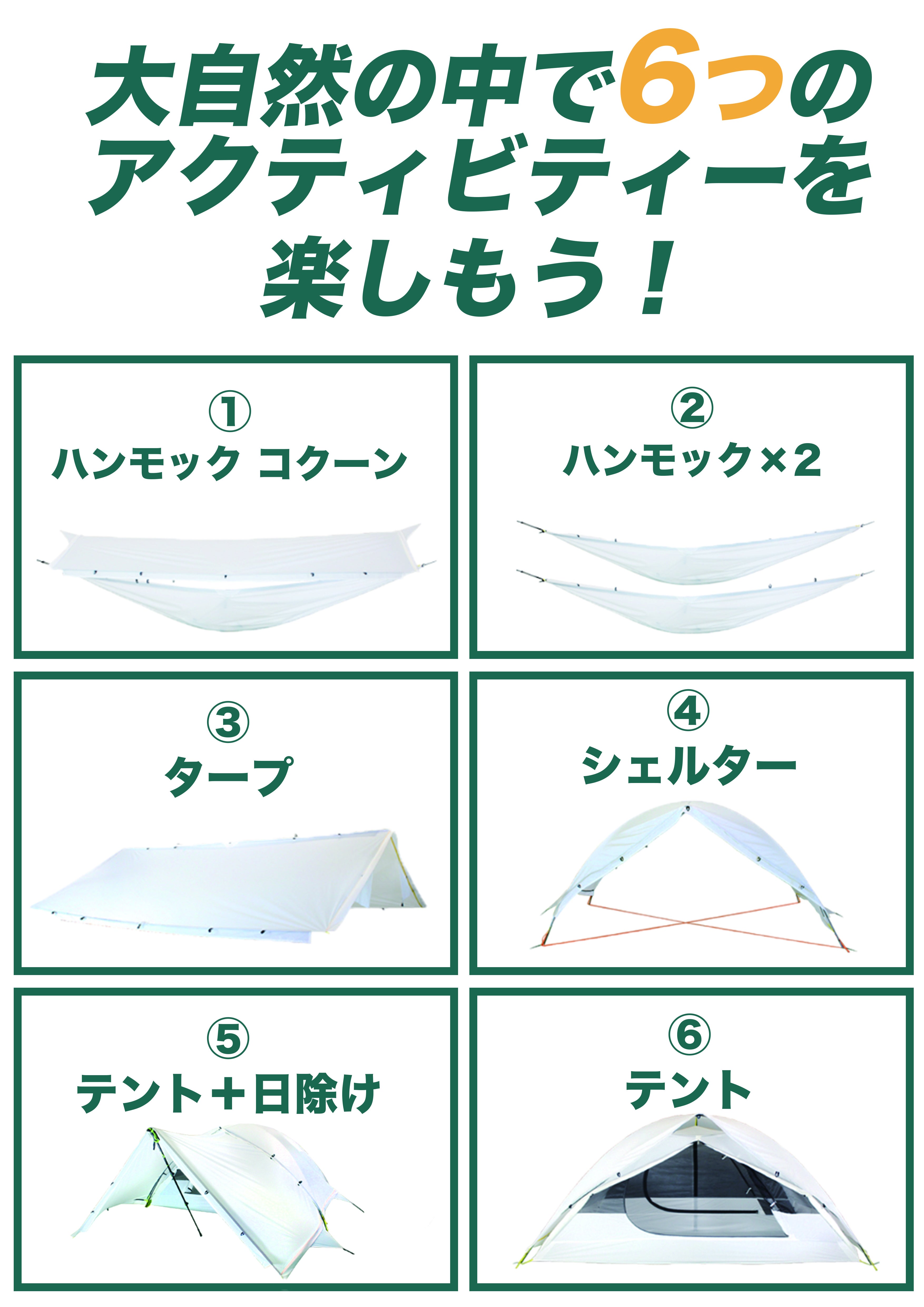 「Beluga(ベルーガ)」はたった2.9Kgのセットで、ハンモックやタープとしても使える6-in-1多機能アウトドアギアです。